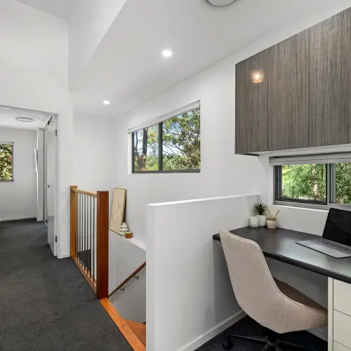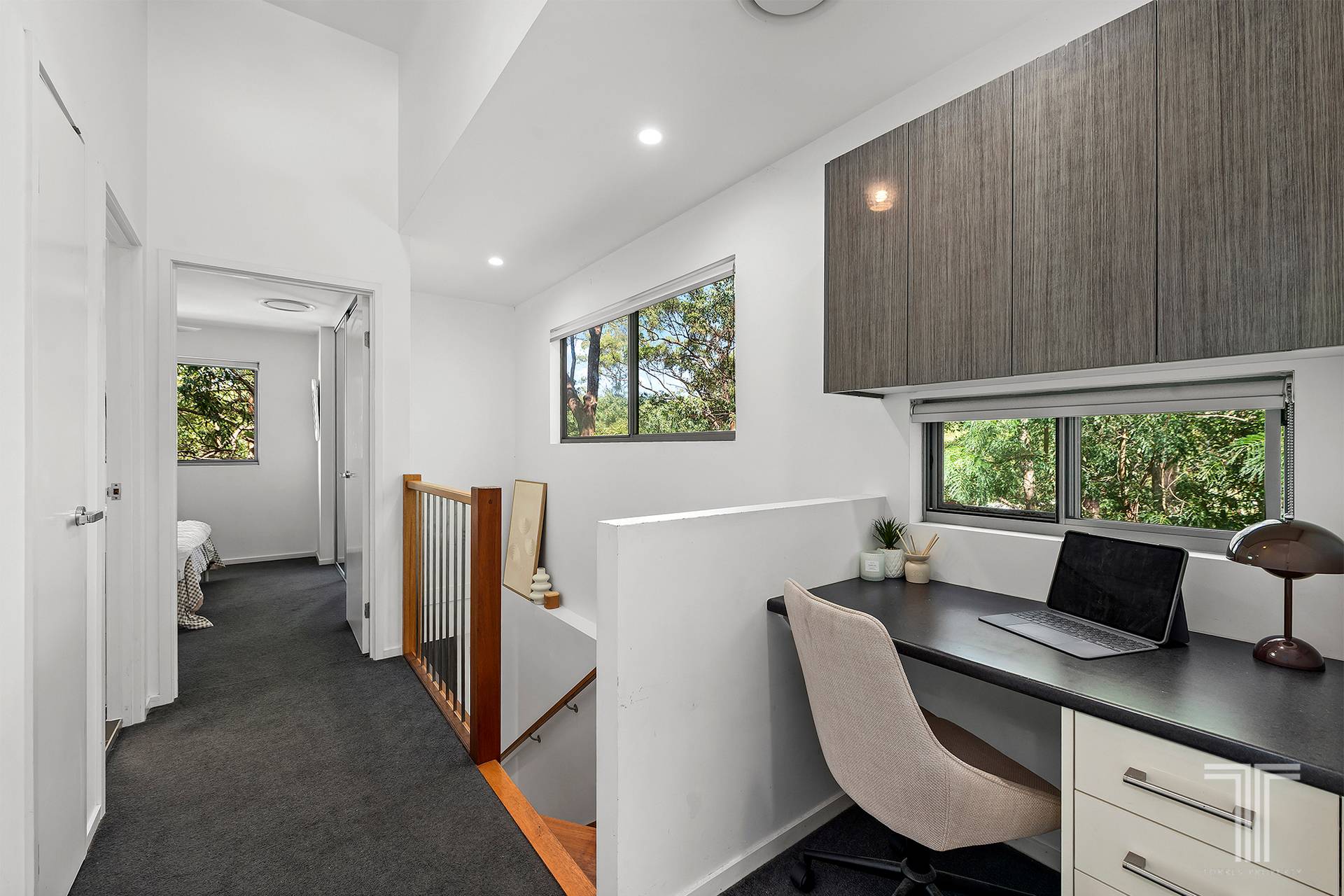 The upper levels continue to deliver comfort and flexibility, a study nook complete with shelving & storage. Two spacious bedrooms fitted with generous built-in robes and soft carpeting underfoot. The main bathroom includes a full-sized bath, while the master enjoys the added privacy of its own ensuite. Ducted air conditioning throughout ensures year-round comfort across all three levels.