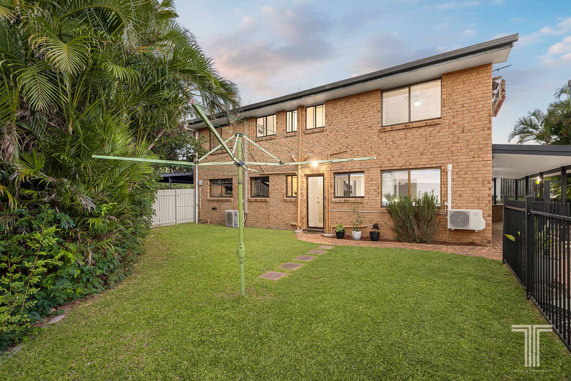 There is still room for the practicalities of family life, with a grassed yard for children and pets, a traditional Hills Hoist clothesline, water tank, and a thoughtful balance between landscaped zones and usable outdoor space. Comfort is assured year-round with a combination of ducted and split system air conditioning, alongside ceiling fans throughout.