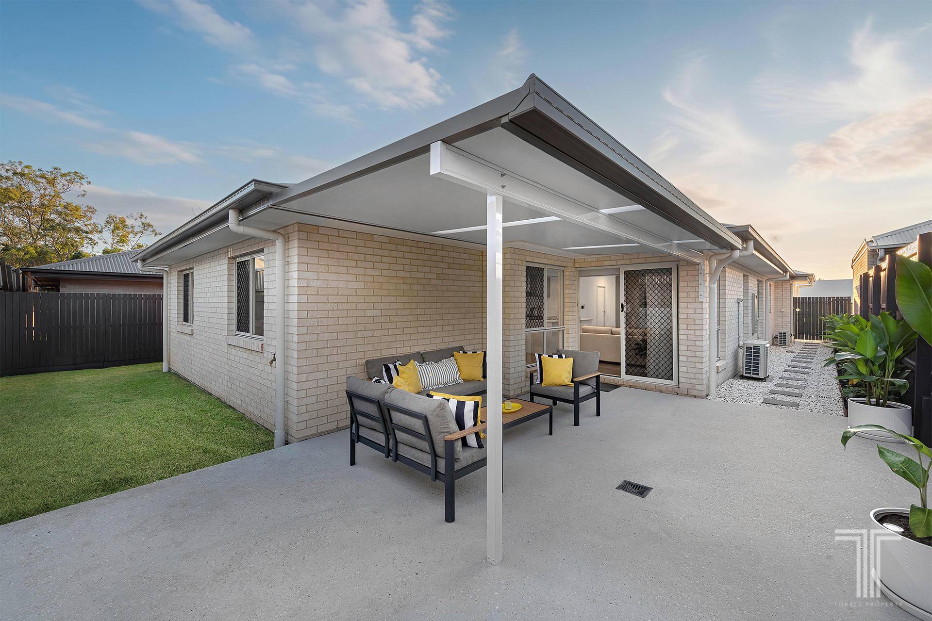 Flowing outdoors, the home continues to impress with low-maintenance surrounds, including side access finished with pebbles and stone pavers. Whether it's a quiet morning coffee or an easy weekend unwind, the outdoor space complements the home's effortless liveability.