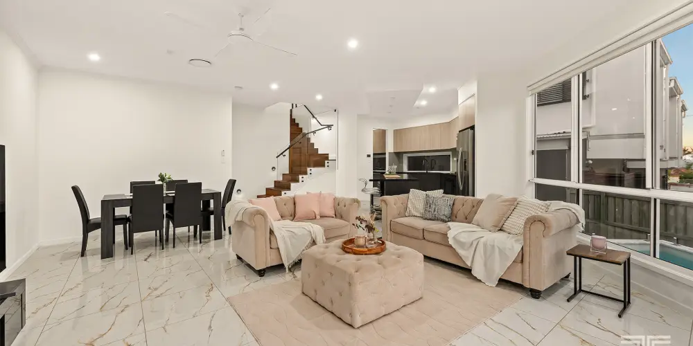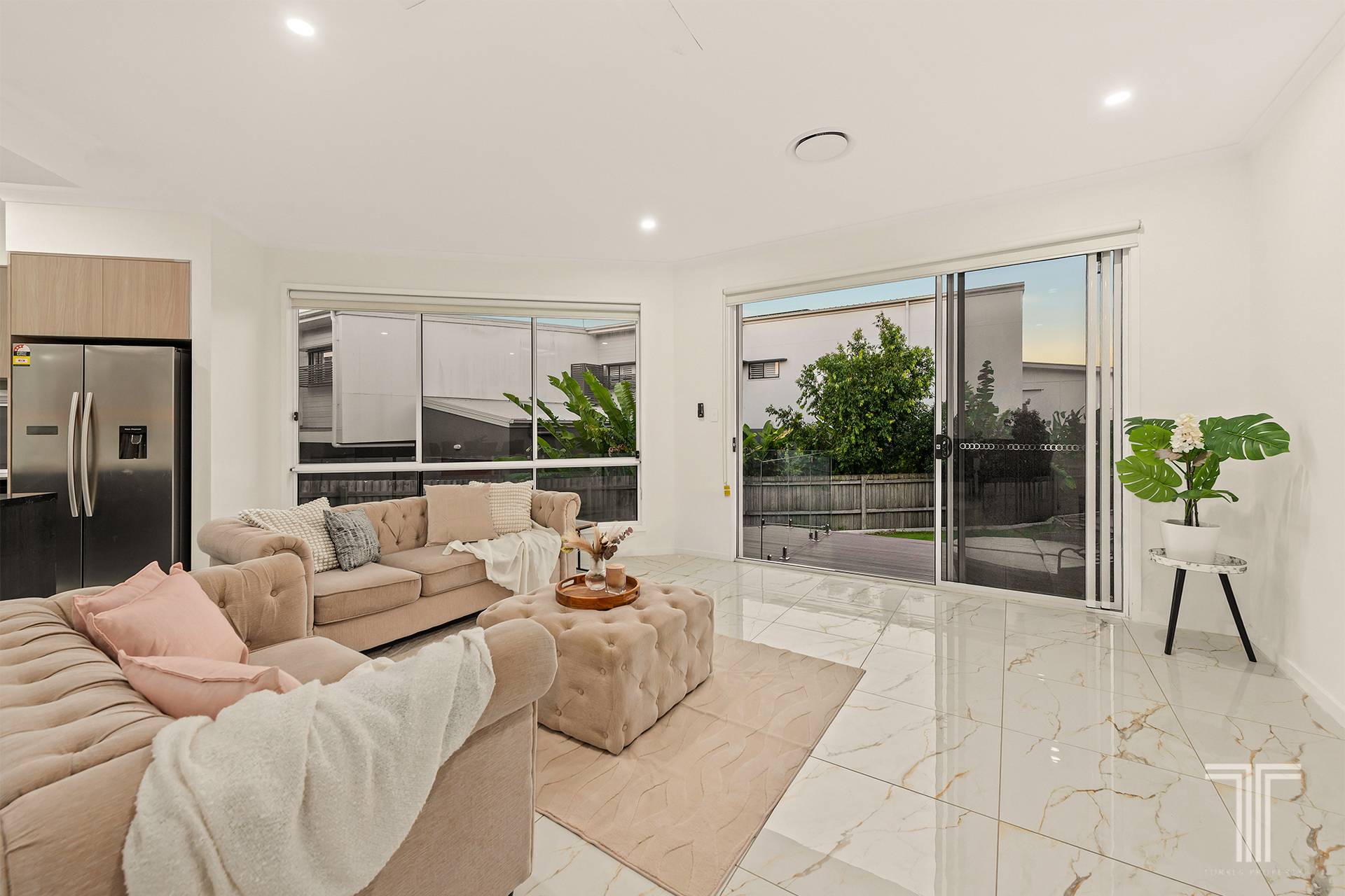 Positioned in a sought-after pocket, the home enjoys close proximity to local shops, transport options and everyday conveniences, while remaining within easy reach of the Brisbane CBD. Elevated positioning captures subtle area views from the upper level, adding another layer of appeal to an already impressive address.