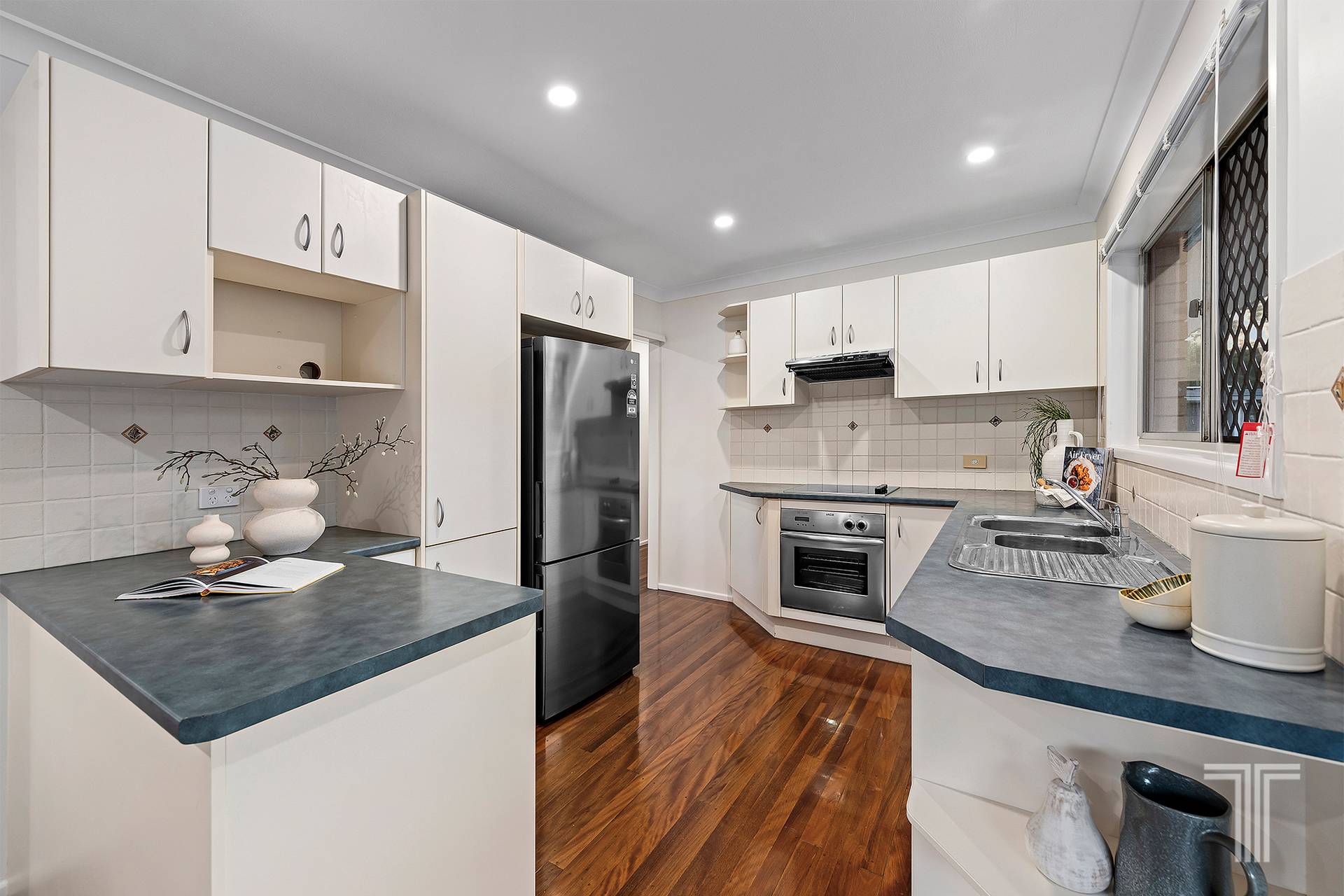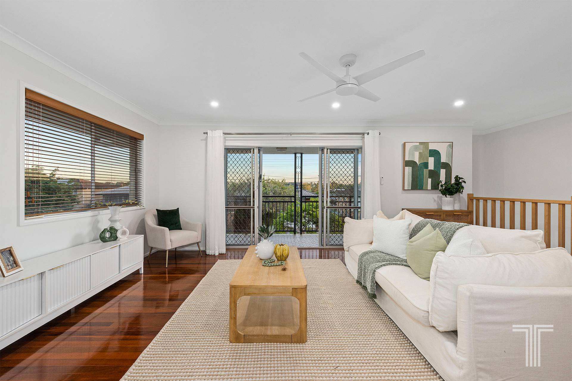 Upstairs showcases lovely hardwood timber floors and an open plan living area that flows seamlessly out to the deck, ideal for entertaining or enjoying quiet family time. The living space is complete with air conditioning and a ceiling fan for year round comfort, while LED downlights add a modern touch. The home features well appointed bedrooms, all fitted with built in wardrobes and ceiling fans, alongside a stylish and modern main bathroom.