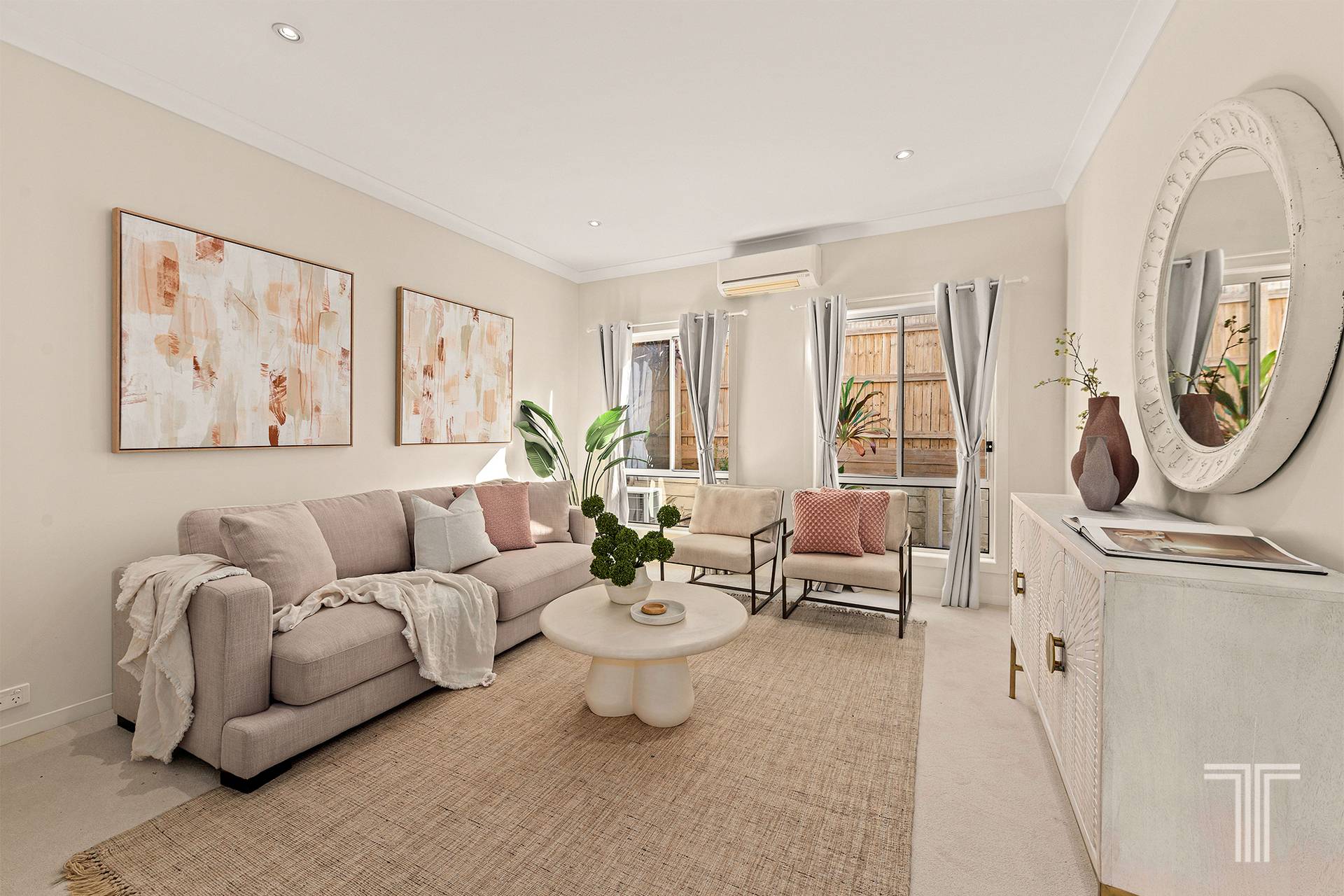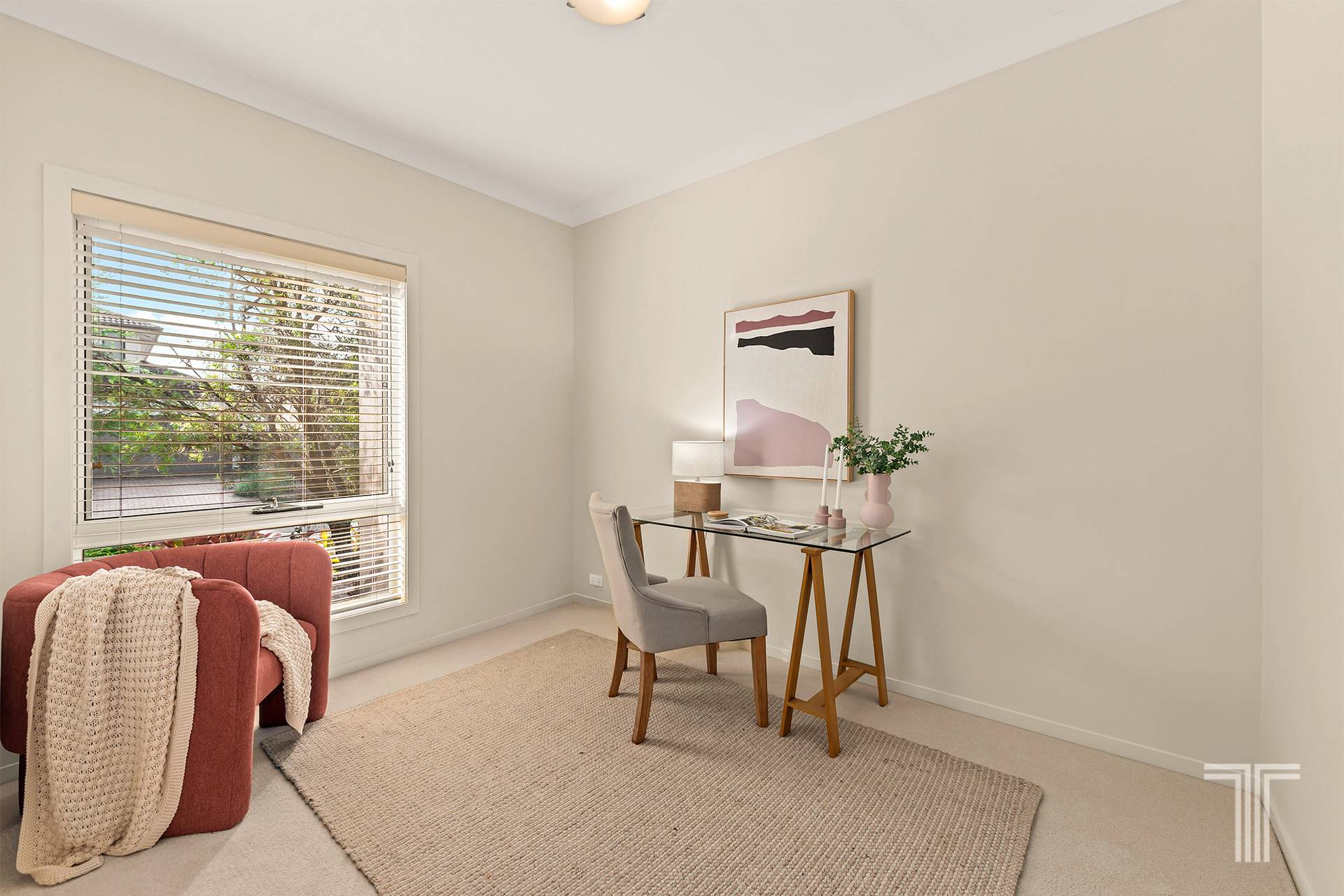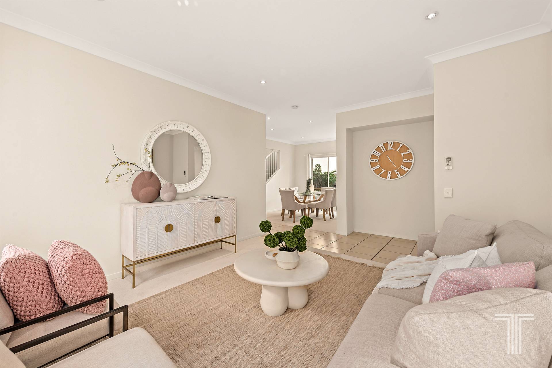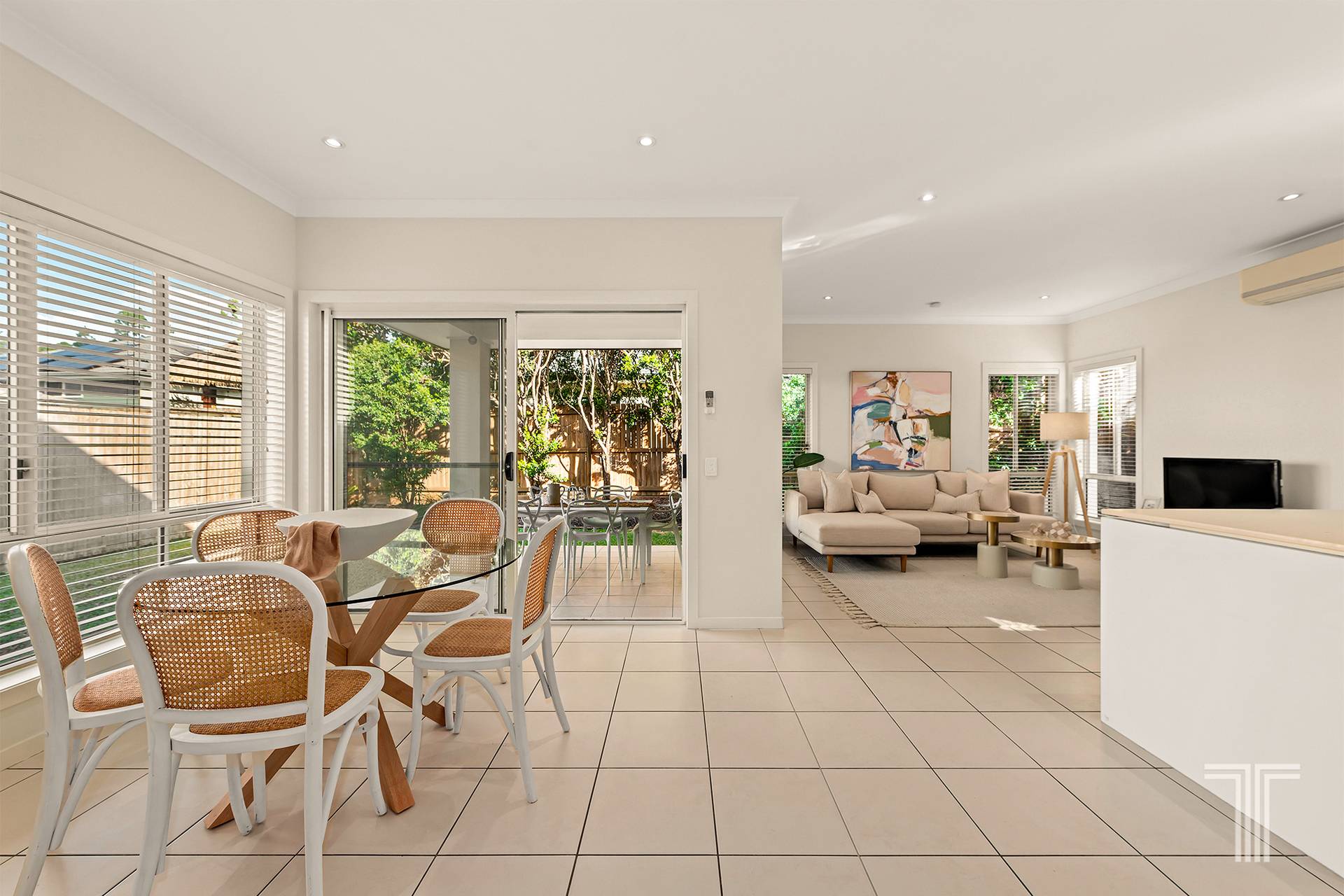 Stepping inside, the layout reveals itself with purpose. A versatile front room offers flexibility as a fifth bedroom, guest retreat or home office, positioned privately near the entry. As you move further in, the home opens to a series of living and dining zones designed to adapt to family life, whether that's quiet evenings or larger gatherings. At its centre, the kitchen connects effortlessly to the surrounding spaces, ensuring you're always part of the moment. Comfort has been thoughtfully considered throughout, with ducted air conditioning servicing the upper level and a split system downstairs, allowing for year-round climate control across both floors.