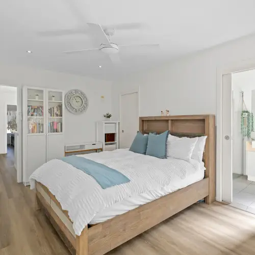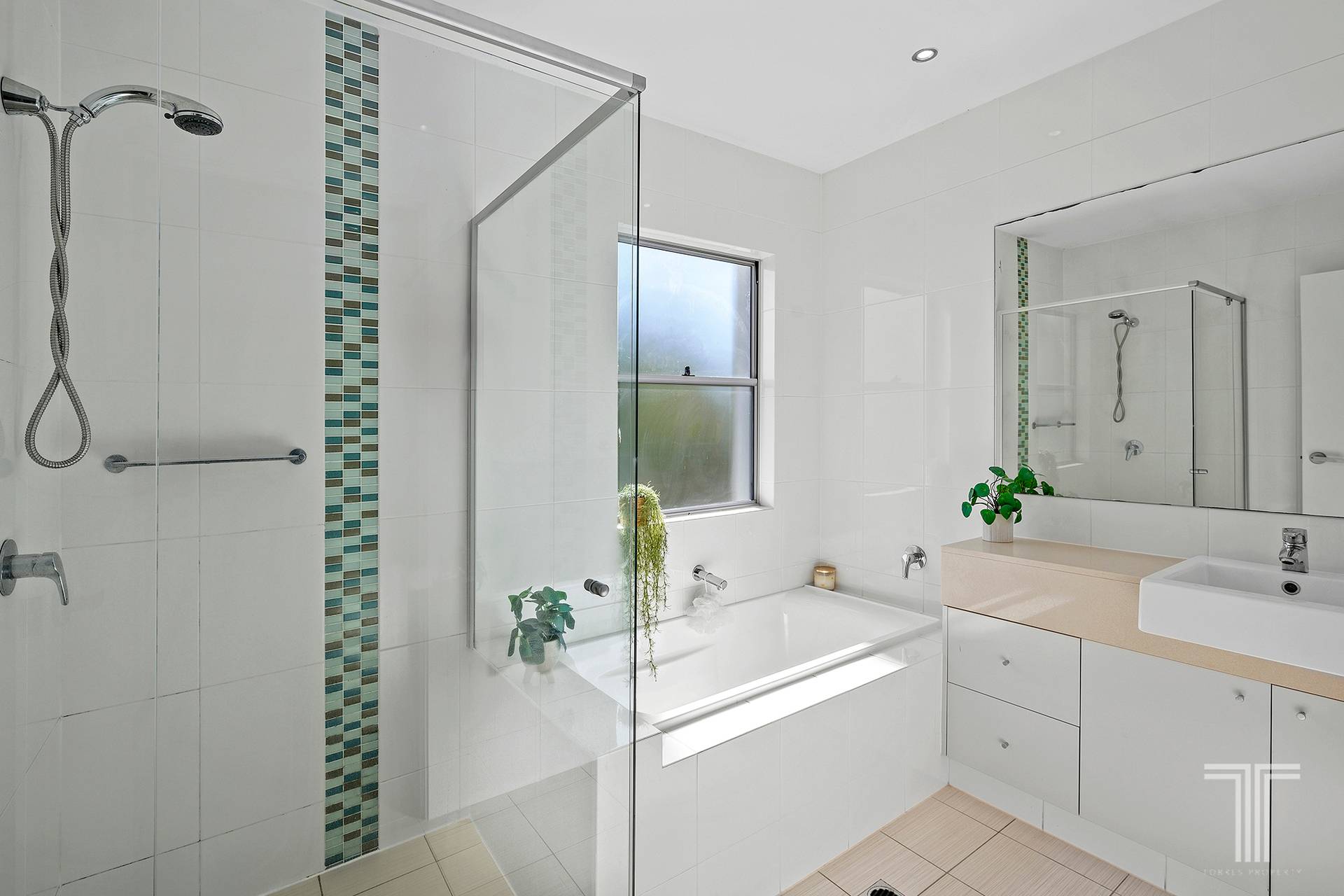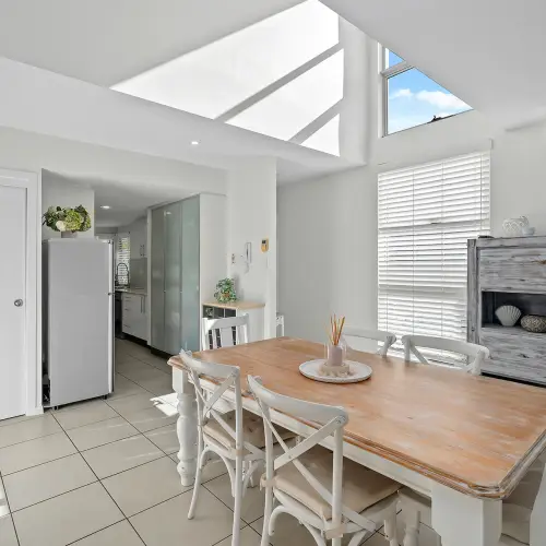 Step inside to a light-filled interior where open-plan living and dining unfold with a natural sense of space. Freshly updated with a soft, neutral palette and enhanced lighting throughout, the home feels both modern and warm. The kitchen is well-appointed with stone benchtops and quality appliances, connecting seamlessly to the main living zone and creating a functional hub for daily life or relaxed entertaining. Sliding doors extend the space outdoors, where a newly fitted hybrid timber deck, complete with gazebo and spa, transforms the courtyard into a private retreat.
