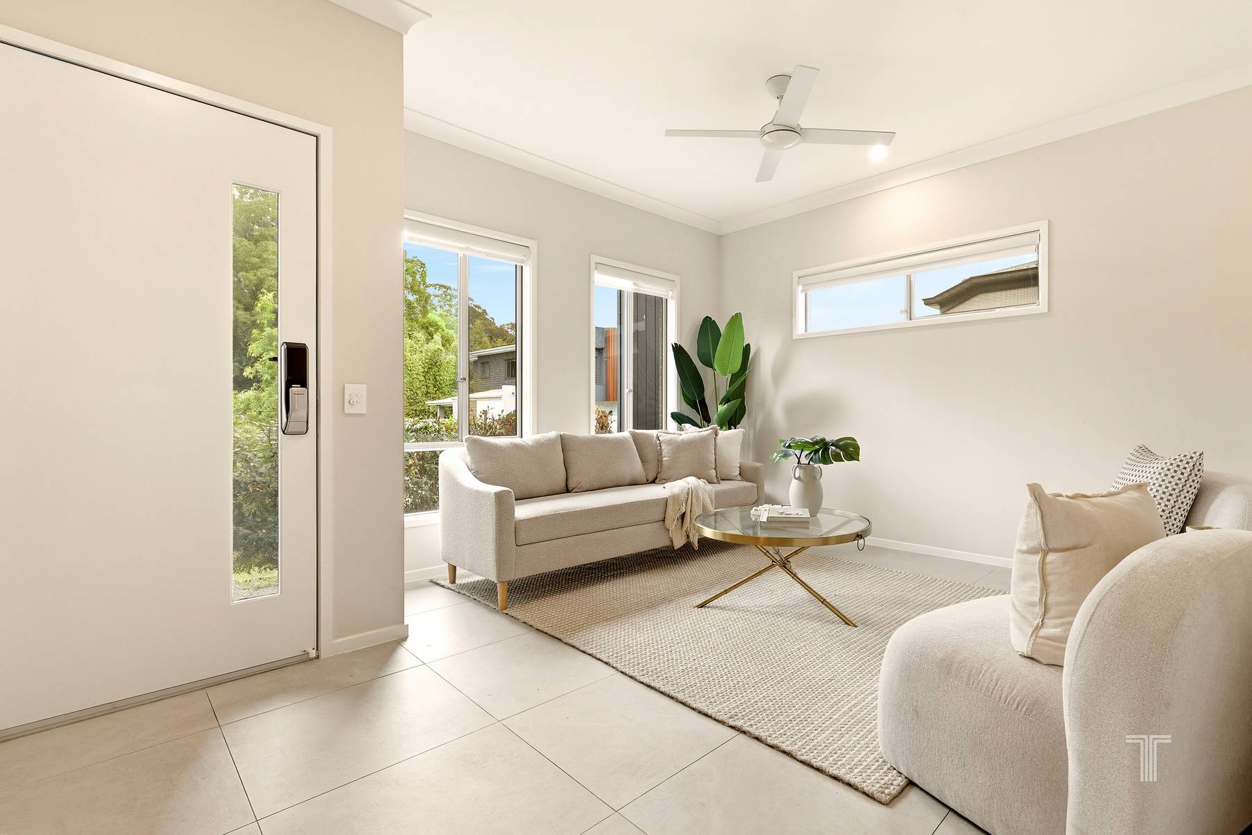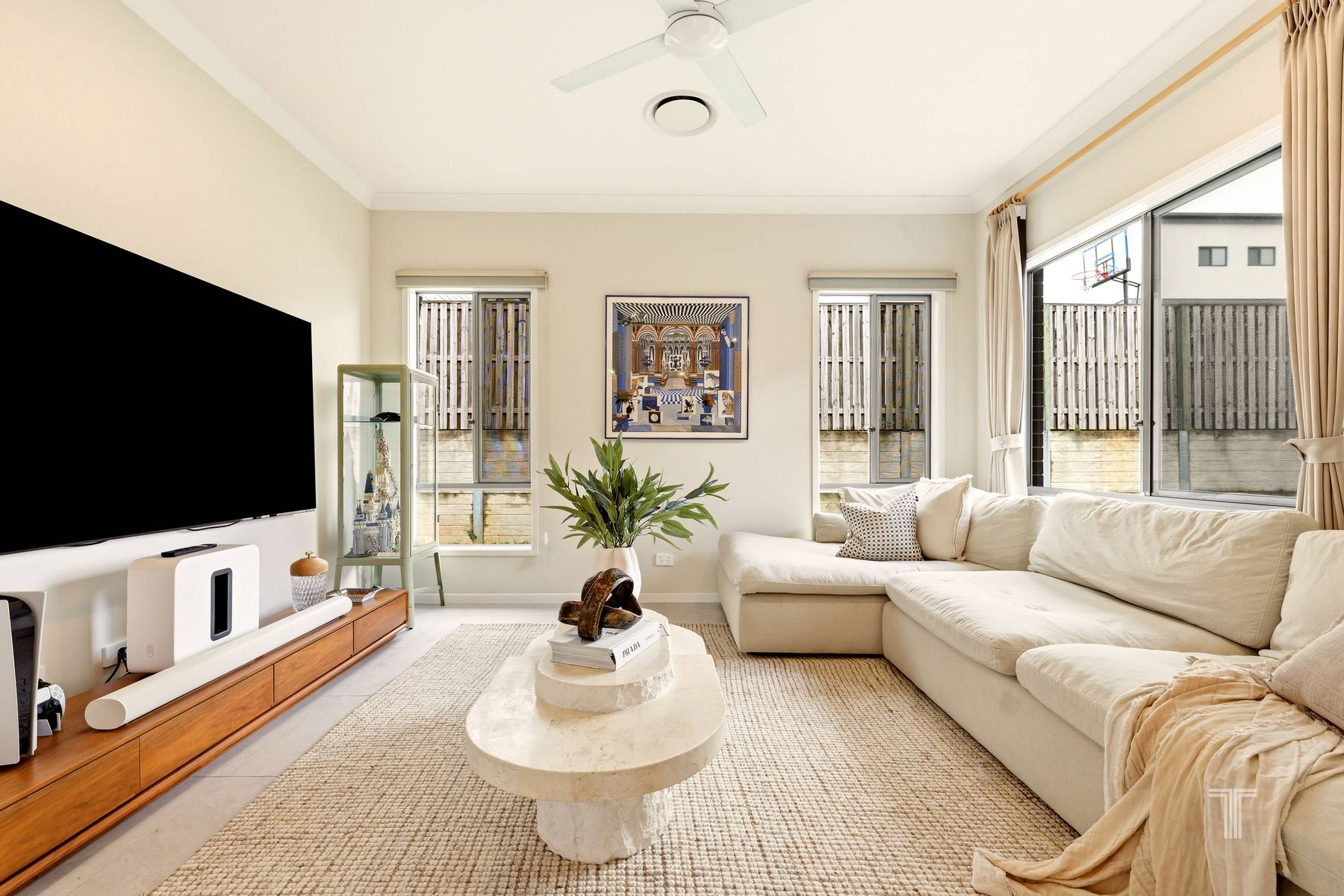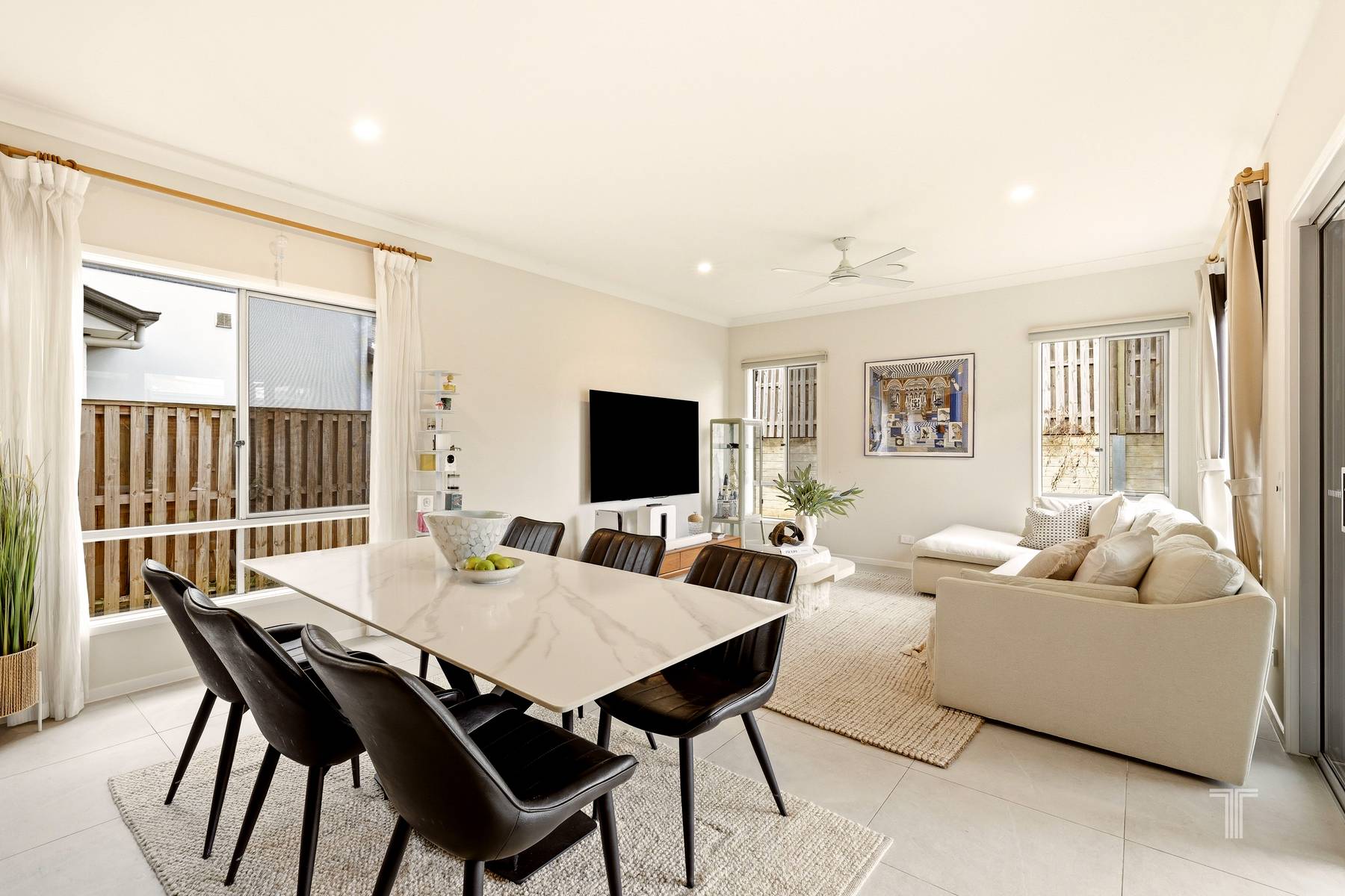 Set slightly elevated within a quiet Rochedale street, this contemporary dual level home makes an immediate impression with a facade that feels both considered and striking. A layered mix of cream tones, deep charcoals, grey brick and timber-look garage door, creates a bold street presence, while clean architectural lines and a carefully layered material palette create a facade that feels cohesive, modern and well resolved. Just four years old and beautifully maintained, it offers the polish of something near-new with the comfort of a home already designed for real life.