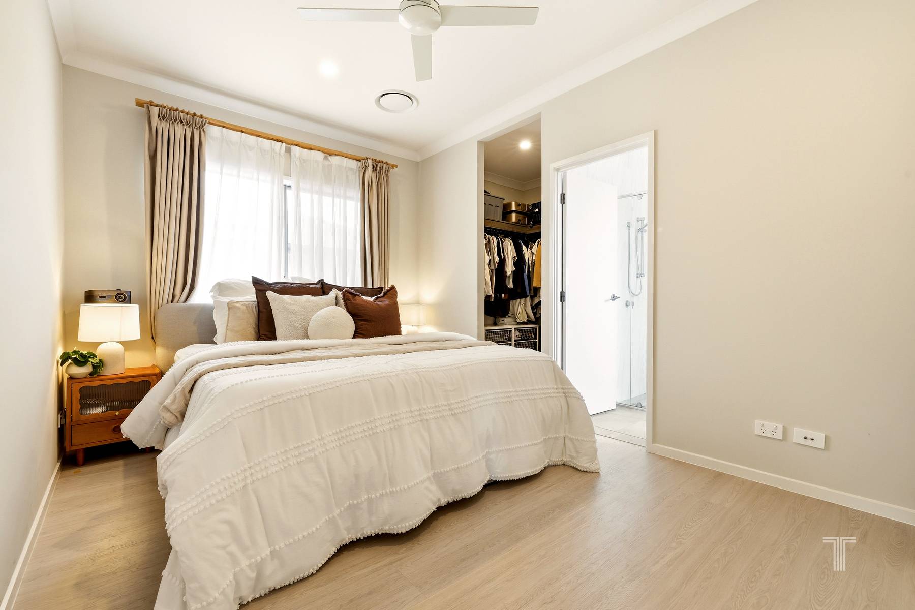 Sliding doors extend the main living zone outdoors to a covered entertaining area that invites easy afternoons and effortless hosting. Beyond, the backyard offers generous grassed space with room for children and pets to roam, play and grow, while side gate access adds flexibility for future enhancements, weekend projects or simply easier everyday living.