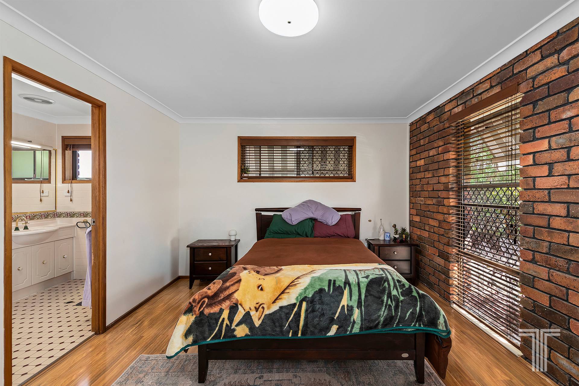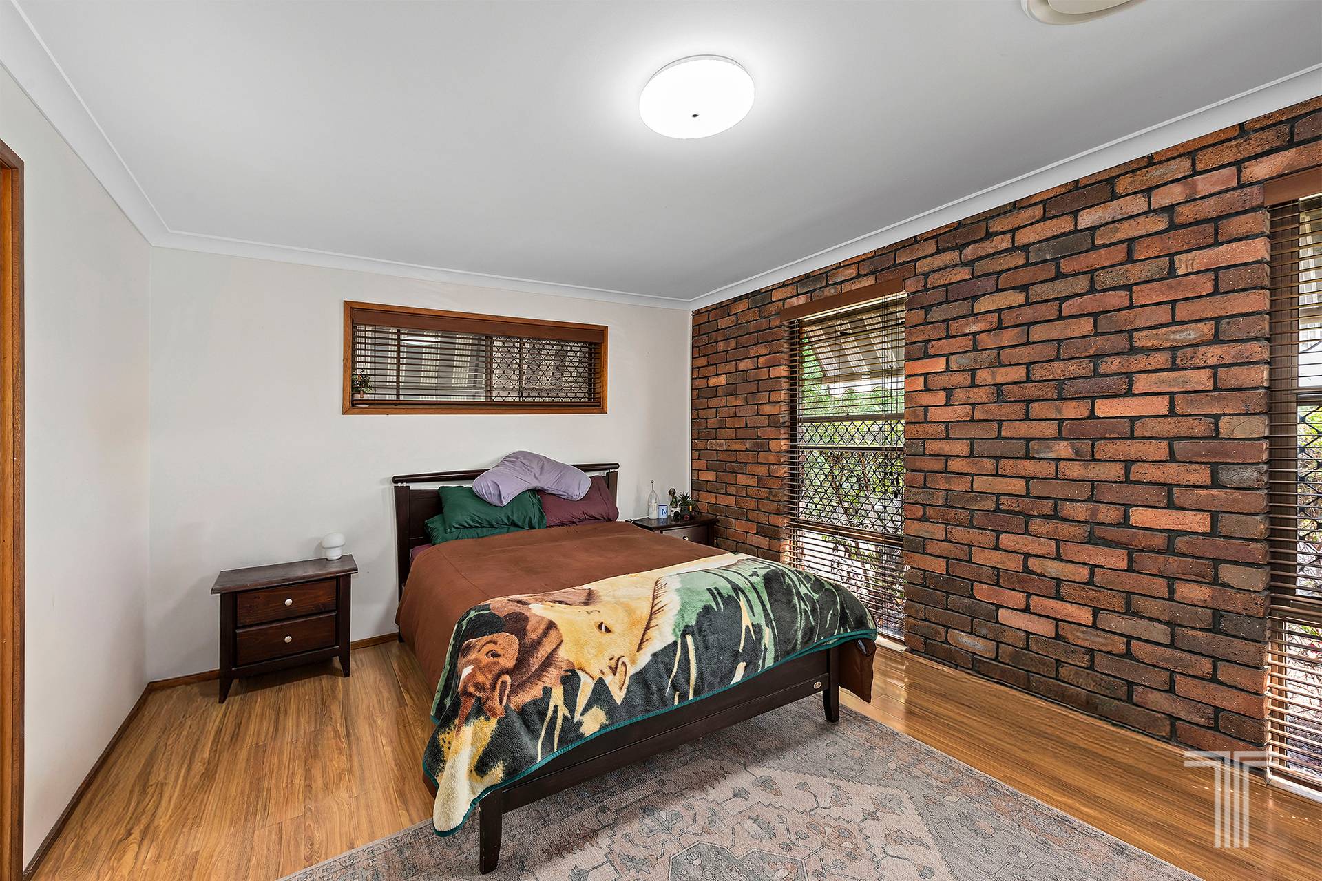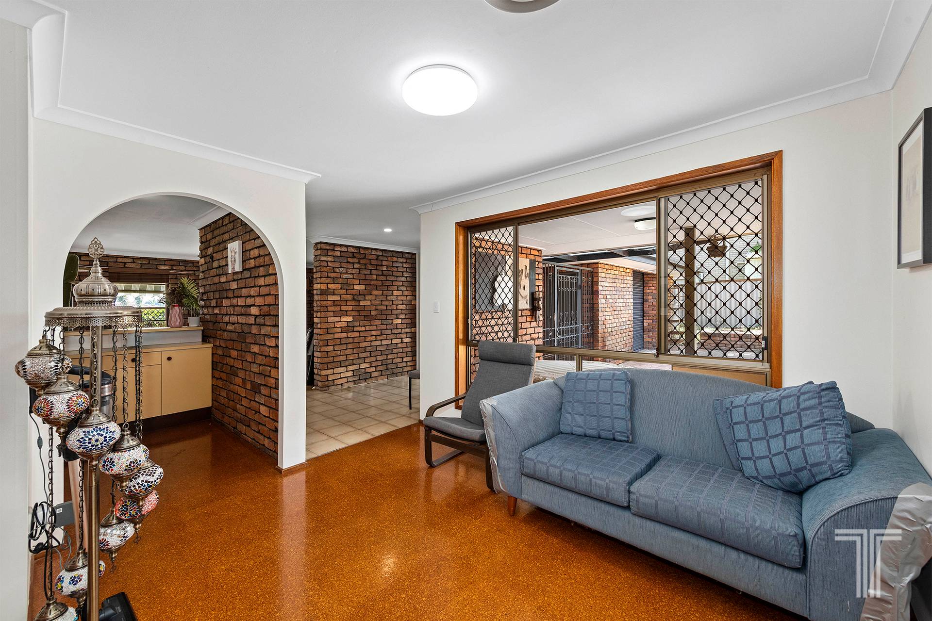 Step inside and the home opens with an immediate sense of personality and comfort, where enduring materials create a space that feels grounded and welcoming. At the front of the home, a more formal main living room makes an immediate impression, anchored by a striking exposed brick feature and combustion fireplace that bring texture, warmth and timeless character to the space. It is a standout focal point, perfectly positioned to create a cosy retreat away from the home's more casual living zones.
