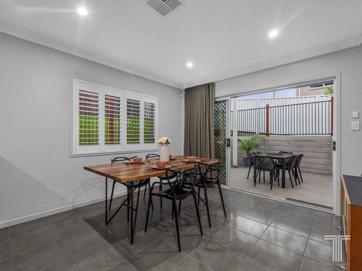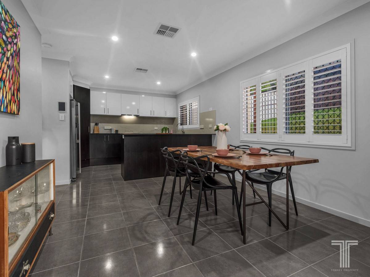 Sitting separate to the lounge room, the dining area adjoins the well-appointed kitchen with black stone benchtops, stainless steel appliances and contrasting cabinetry and extends out onto the spacious alfresco entertaining area.