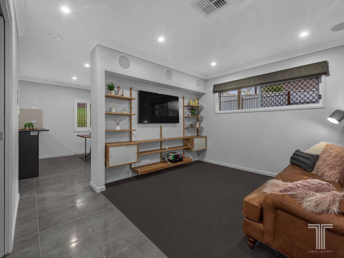 Near new and perfect for growing families, the ground floor of this superb home features a large and comfortable lounge room boasting built-in surround sound speakers and wall-mounted TV.