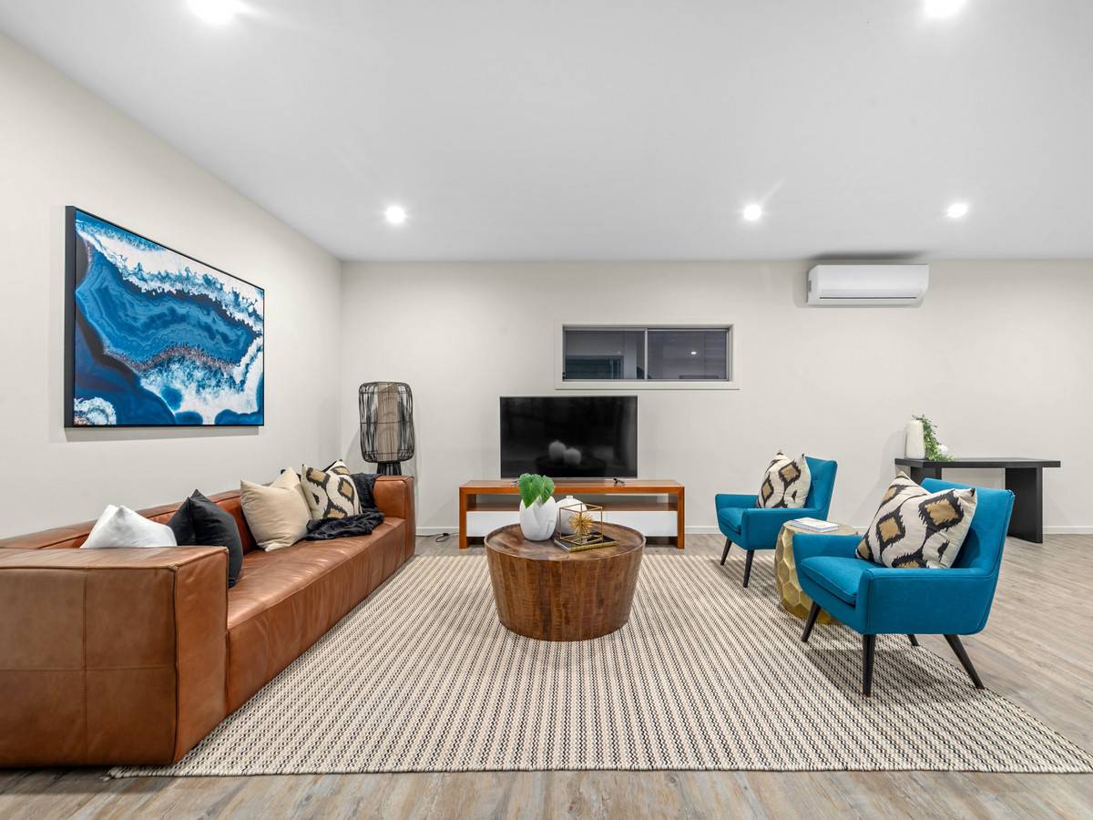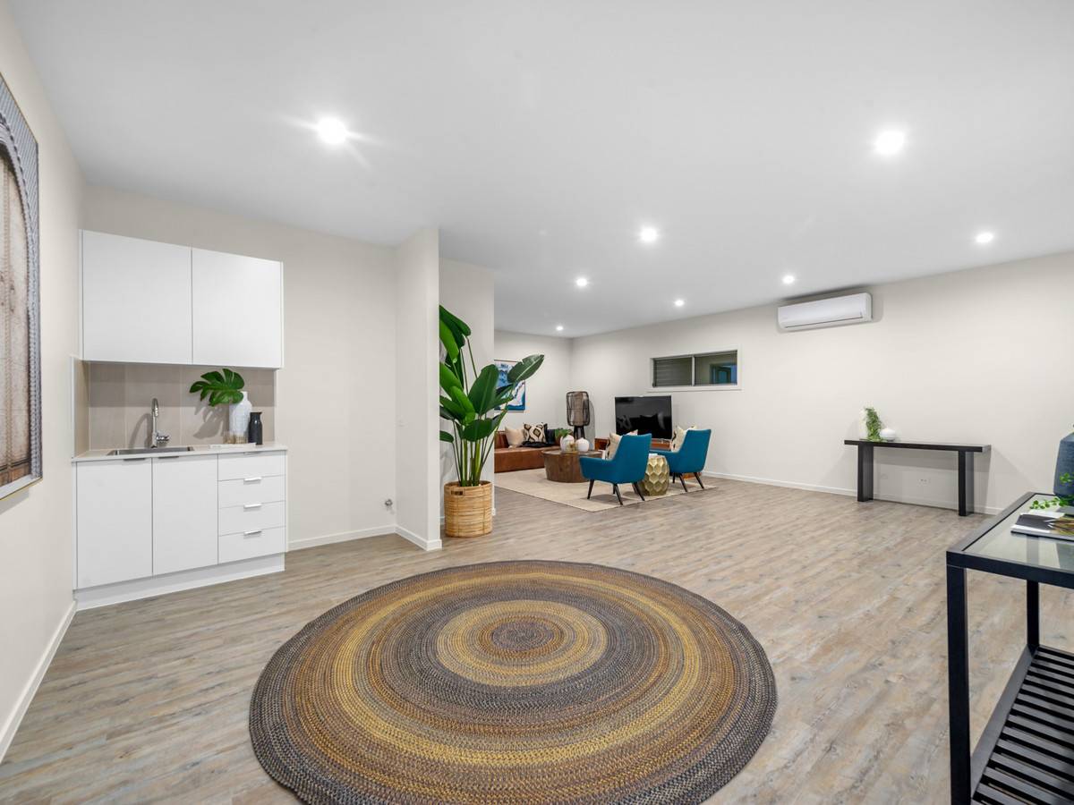 The air conditioned, open plan lower level has been designed with flexibility in mind. It can be used as a family room with plenty of room for the kids to play or can be converted into a separate living space for older children, parents or guests. A full bathroom with shower over bath and separate laundry as well as an oversized two car garage, with room for 2 more off-street complete this floor.
