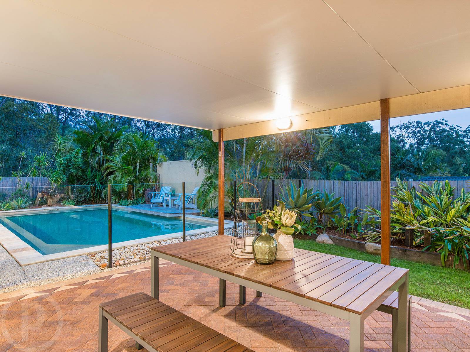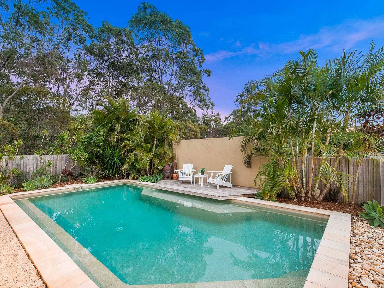 Glass sliders provide seamless access to the covered rear patio and glimmering in-ground pool, all framed by landscaped gardens. You will love the serenity that this property offers with access straight from the backyard to the nearby park and bike track which will never be developed.