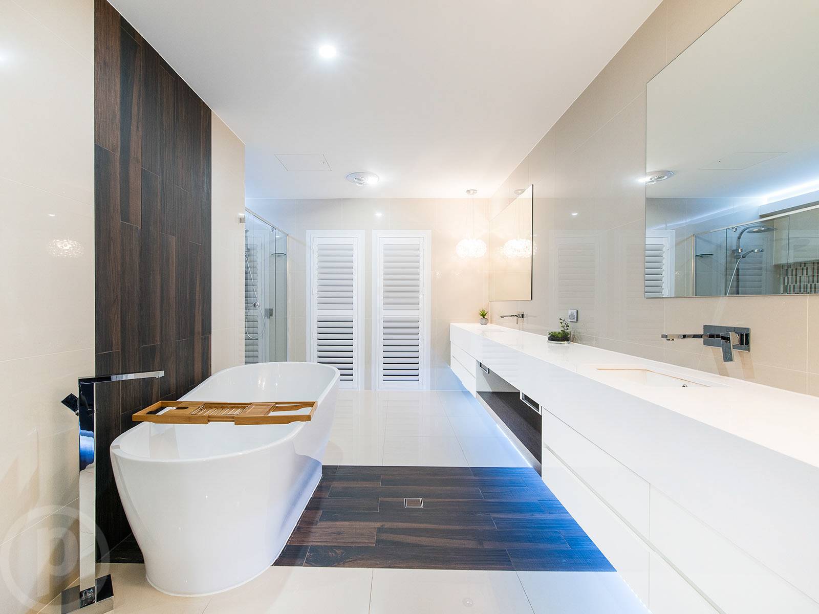 Accommodation for the family is extensive, with five bedrooms, three full size bathrooms and an additional powder room. This includes the master suite with a comprehensive walk through wardrobe that leads to the luxurious ensuite. This palatial bathroom features a freestanding bath, timber inlaid flooring and wall feature, a full length vanity and a large double shower.
