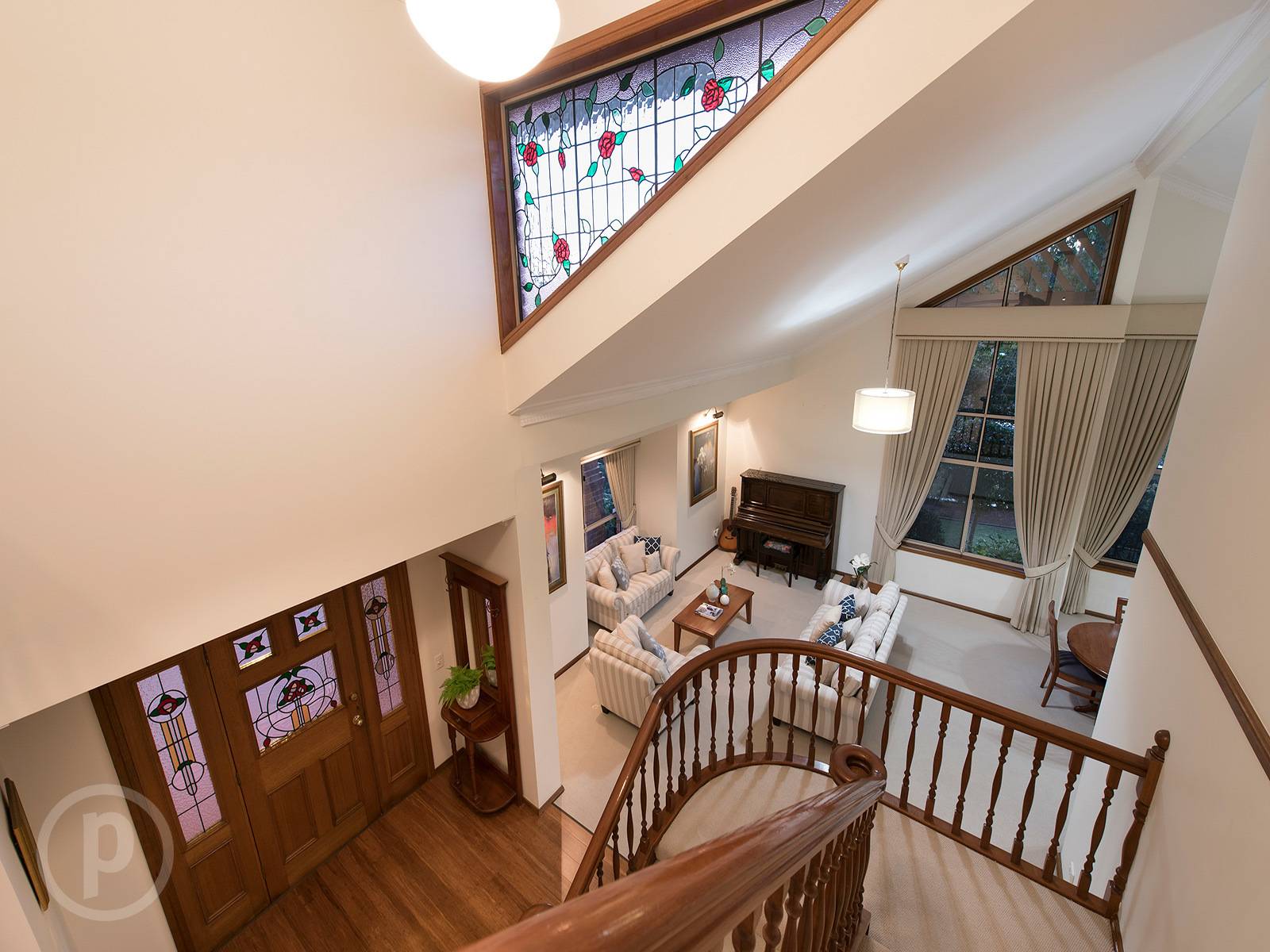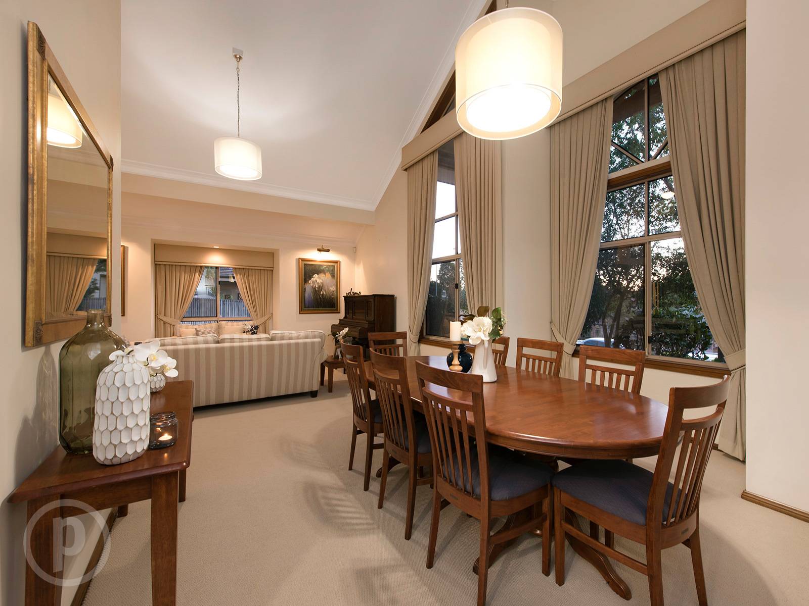 Enter this home via the wide timber and lead light door and be instantly welcomed inside with high ceilings, lead light panels and warm tones throughout. The ground level has a spacious formal living and dining area with soaring high ceilings and leafy outlooks.