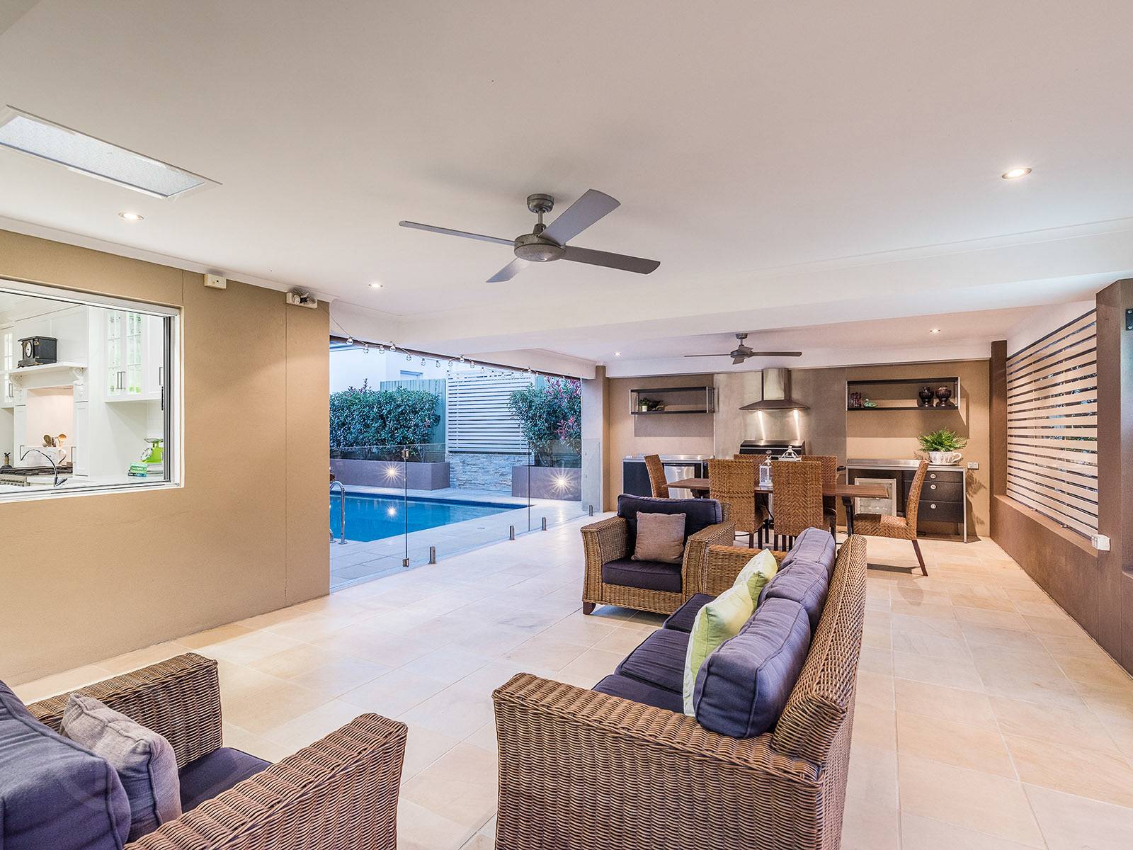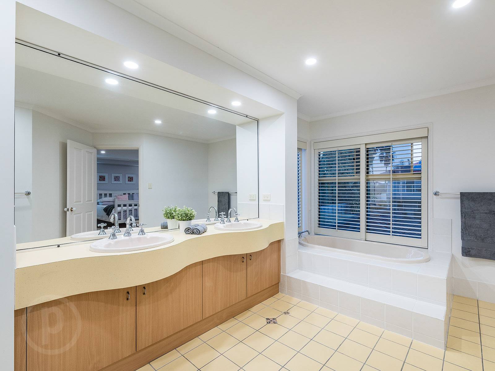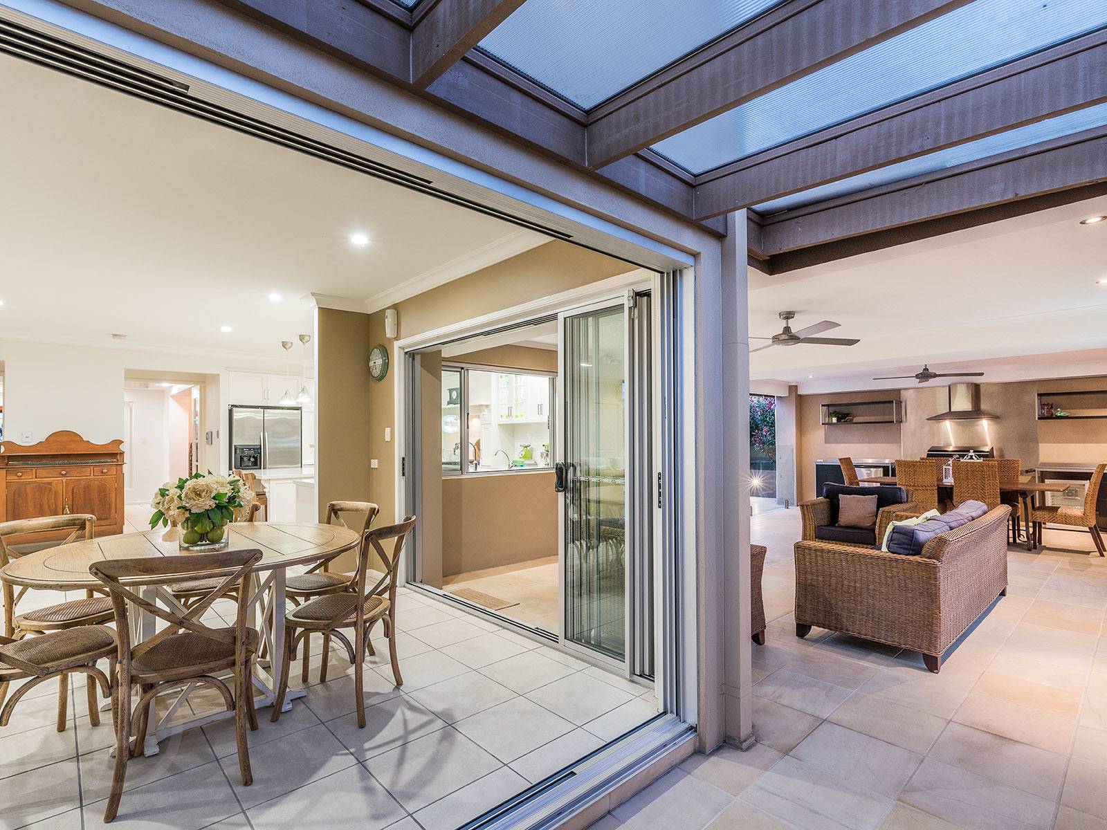 An entertainers haven, make your way outside through glass sliders to the covered alfresco area with a full outdoor kitchen. Offering an idyllic outdoor setting, flow to the sparkling saltwater pool and landscaped yard with manicured gardens, perfect for the children and pets to play.