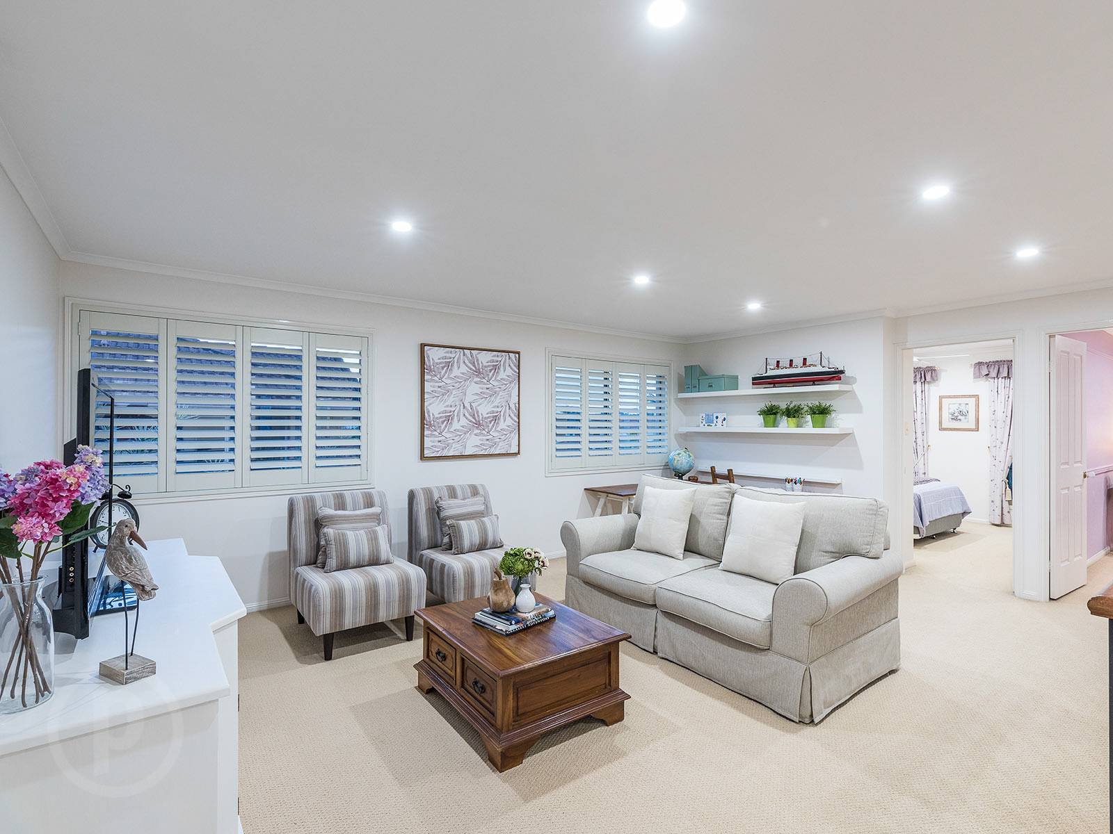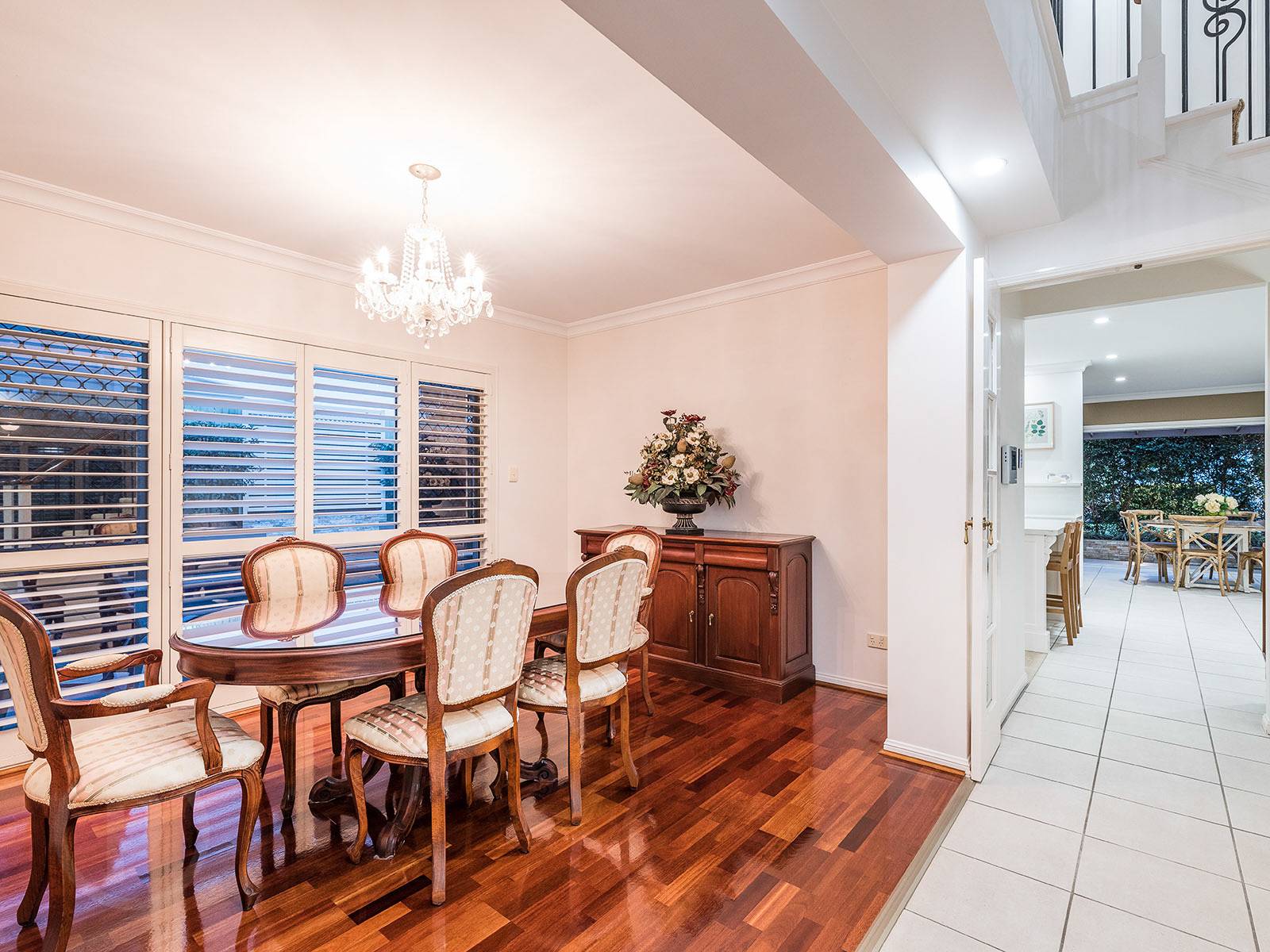 Through the hallway is a formal living and dining area, ideal for hosting more intimate events, this space is finished with polished timber floors and plantation shutters,