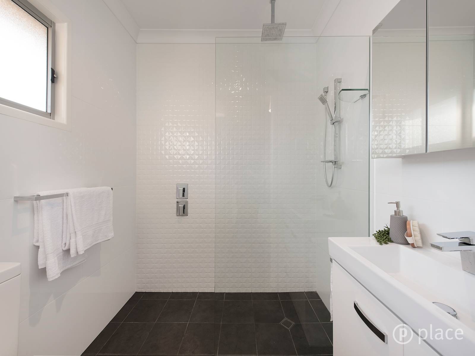 Also boasting deck access, the master bedroom features air conditioning and a private ensuite with shower, vanity and toilet. The additional two bedrooms feature built-in robes and are serviced by the main bathroom with separate bath and shower, vanity and toilet.