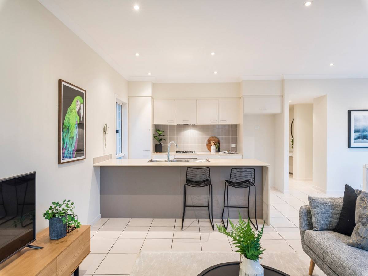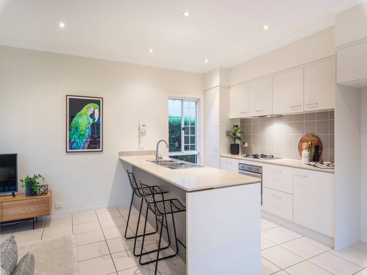 The main living space is located at the rear of the ground floor, comprised of the kitchen, dining and lounge in a breezy, open plan format. Within this space, the kitchen is centrally positioned to easily service the living areas with superb appointments including stone benchtops, Meile dishwasher and Smeg 4 burner stove top. Adjoining the kitchen is a spacious lounge and dining area with direct access to the outdoor patio, perfectly set up for entertaining and enjoying relaxing weekends.