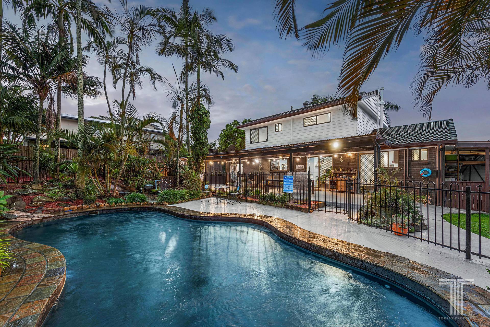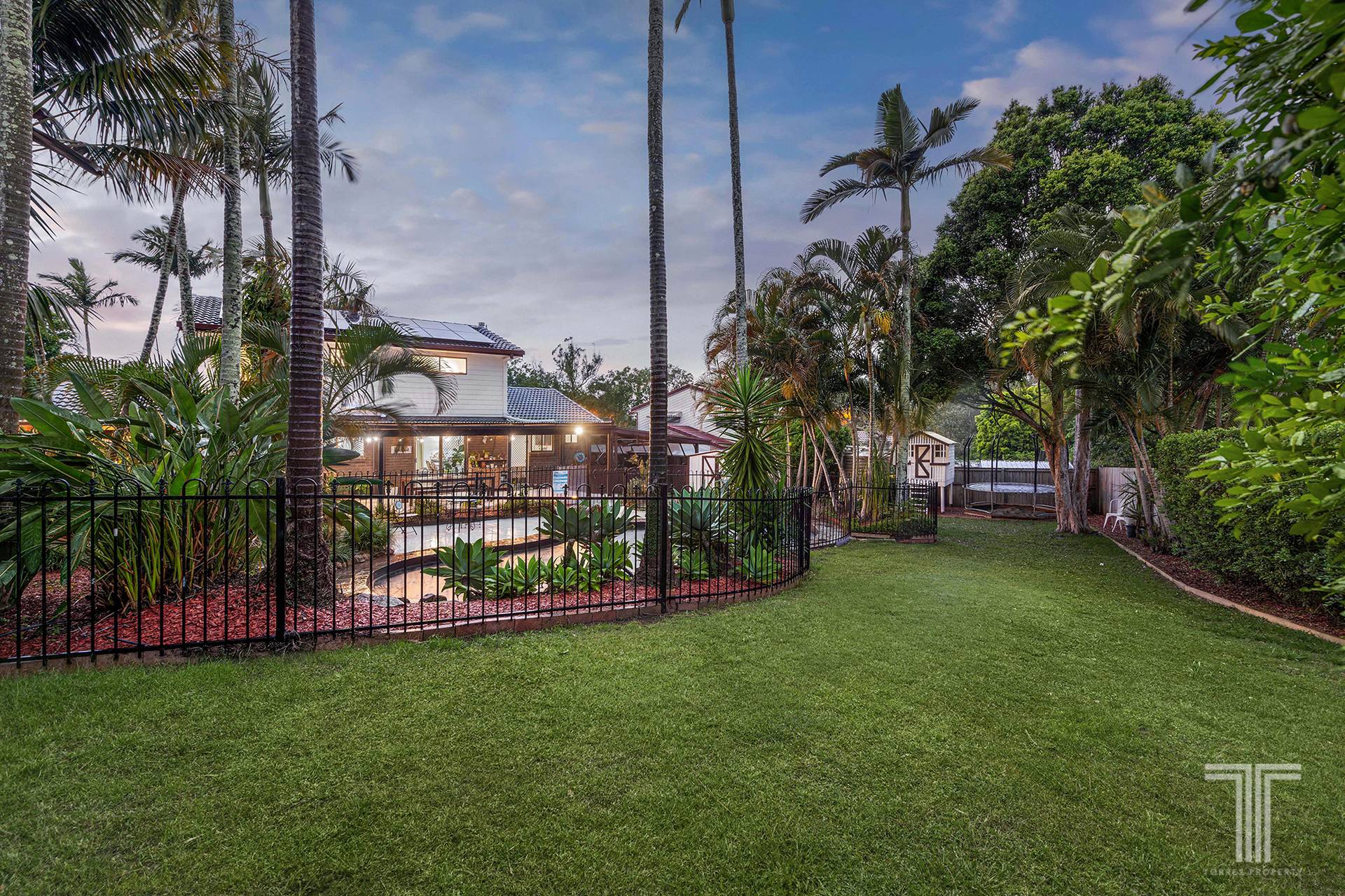 A sublime hideaway, the undercover alfresco area offers exquisite space for outdoor living, hosting, games and relaxation with sweeping sights over the glistening pool, tropical palm trees, flourishing gardens, and the big backyard.
