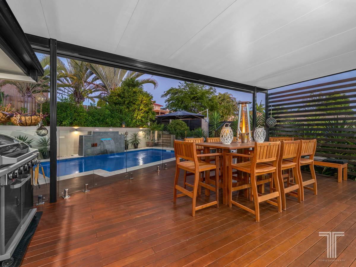 An idyllic outdoor retreat, the rear timber deck is perfect for entertaining. Dressed in rich timber boards and overlooking the magnificent glass framed pool, weekend BBQs will be a delight.