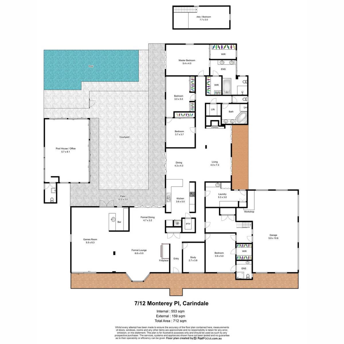 A further two bedrooms with outlooks over the pool feature built-in robes and are serviced by the main bathroom, while a fourth bedroom at the front of the home delights in a private ensuite and walk-in robe. Completing the bedrooms is the fifth, attic bedroom with ample storage space.