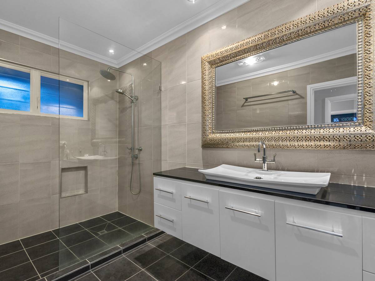 Centrally positioned and servicing the house is the modern bathroom with large, double headed shower, vanity and separate toilet.