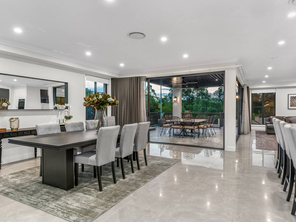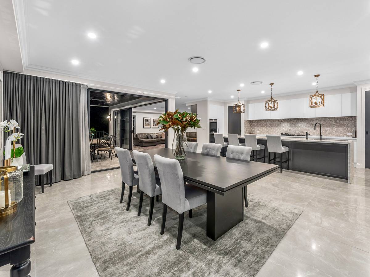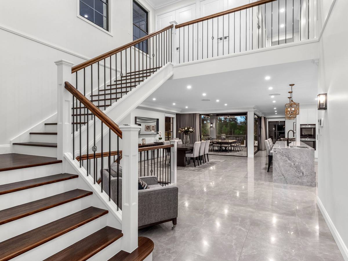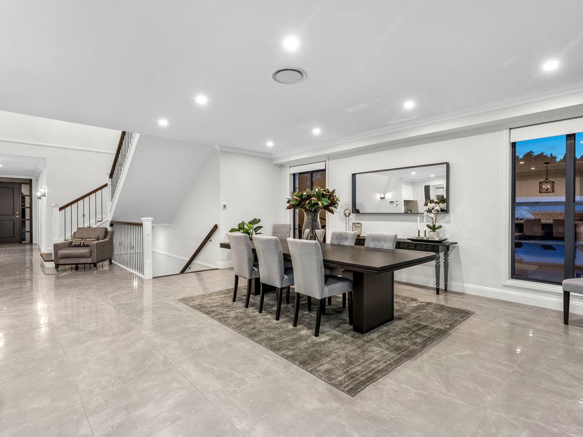 Entering inside, a soaring void and grand staircase creates a statement entrance into the home. Filled with natural light and a marvellous sense of space, this foyer leads you through into the open plan and welcoming dining area with spacious 2.7m ceilings.