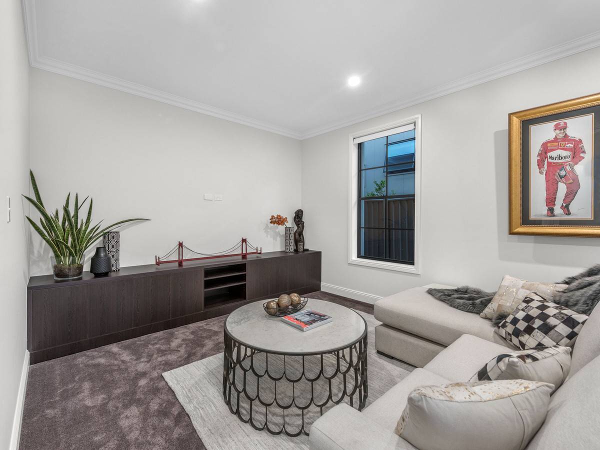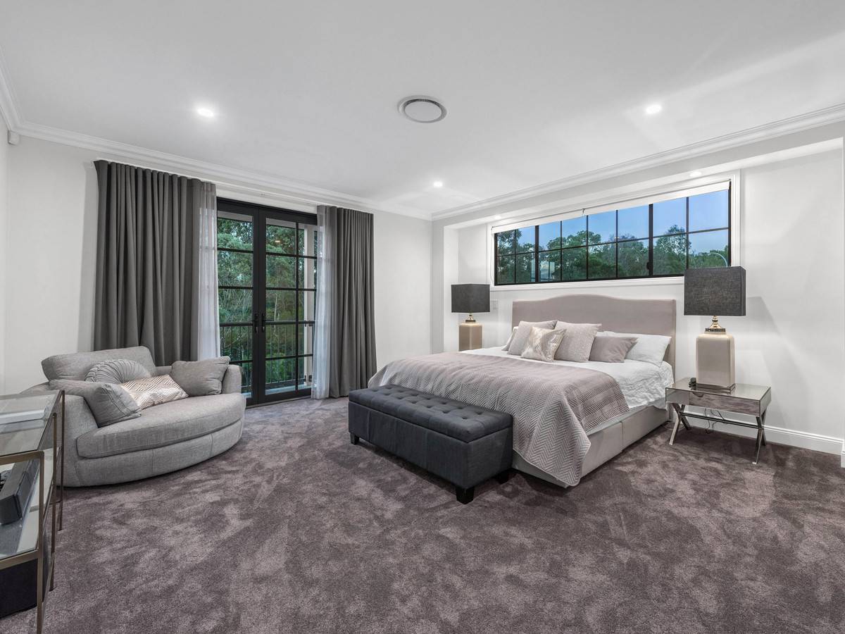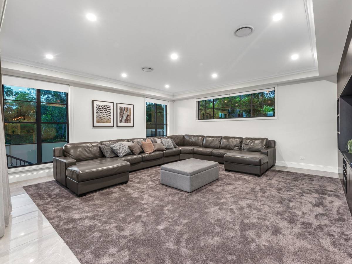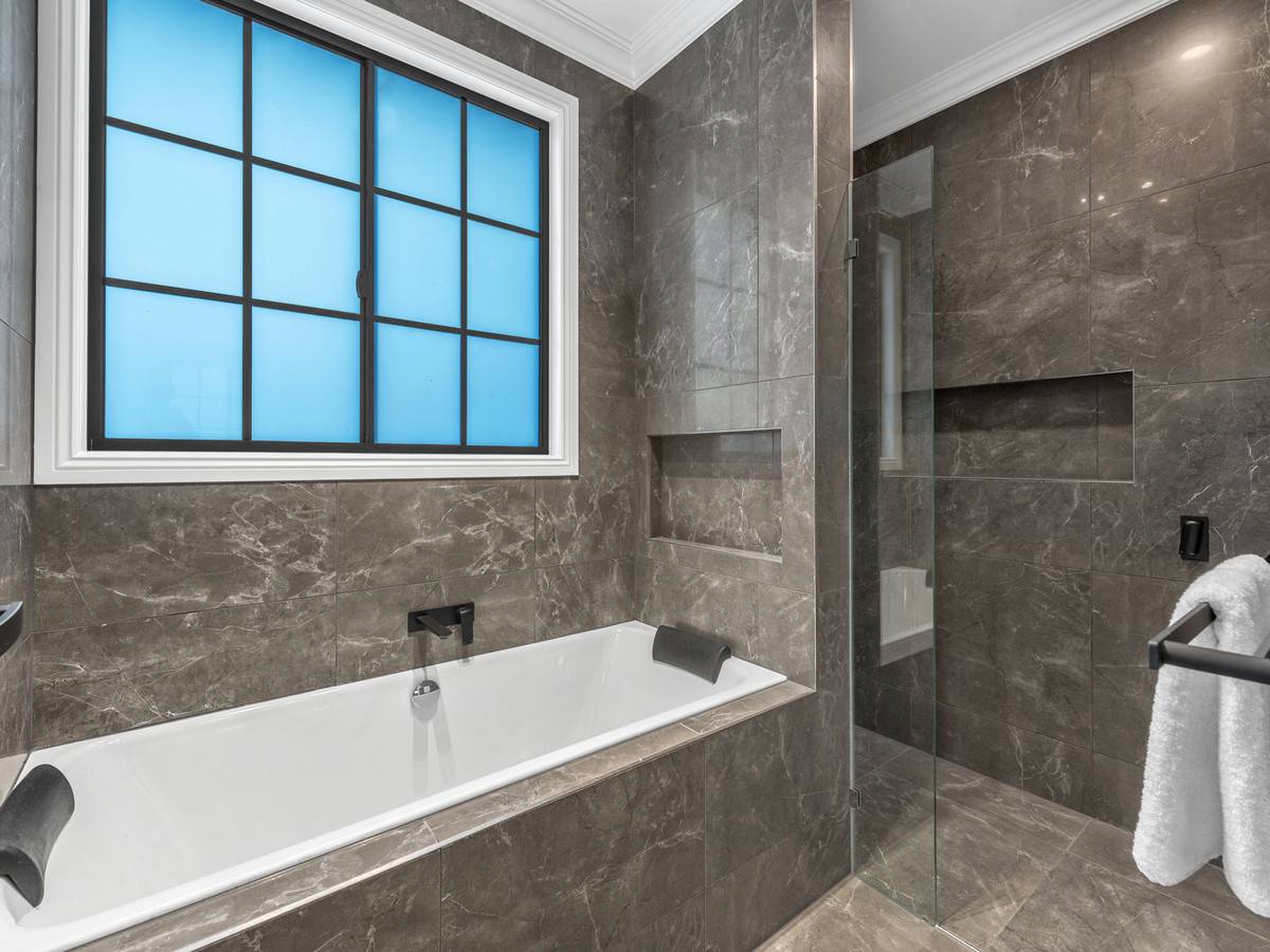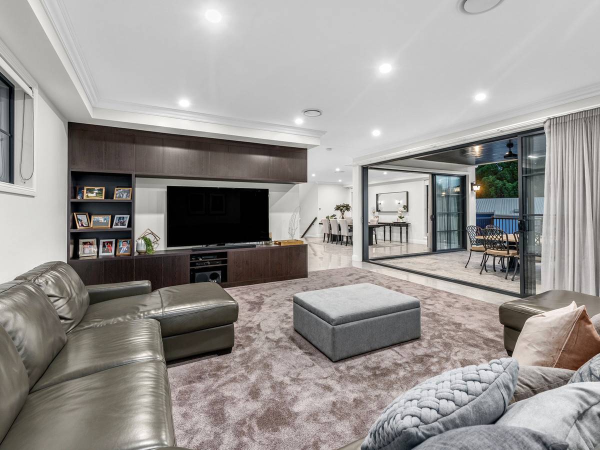 Upstairs, four spacious bedrooms are well separated from the main living level below. An idyllic and opulent retreat, the master suite is a parents paradise and features a private balcony, walk-in robe with dressing area and luxe ensuite with dual vanities, feature stone benchtops and dual headed shower.