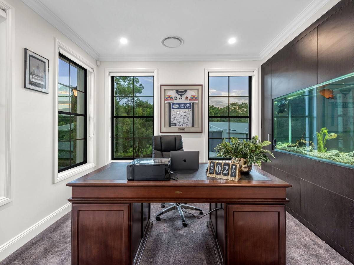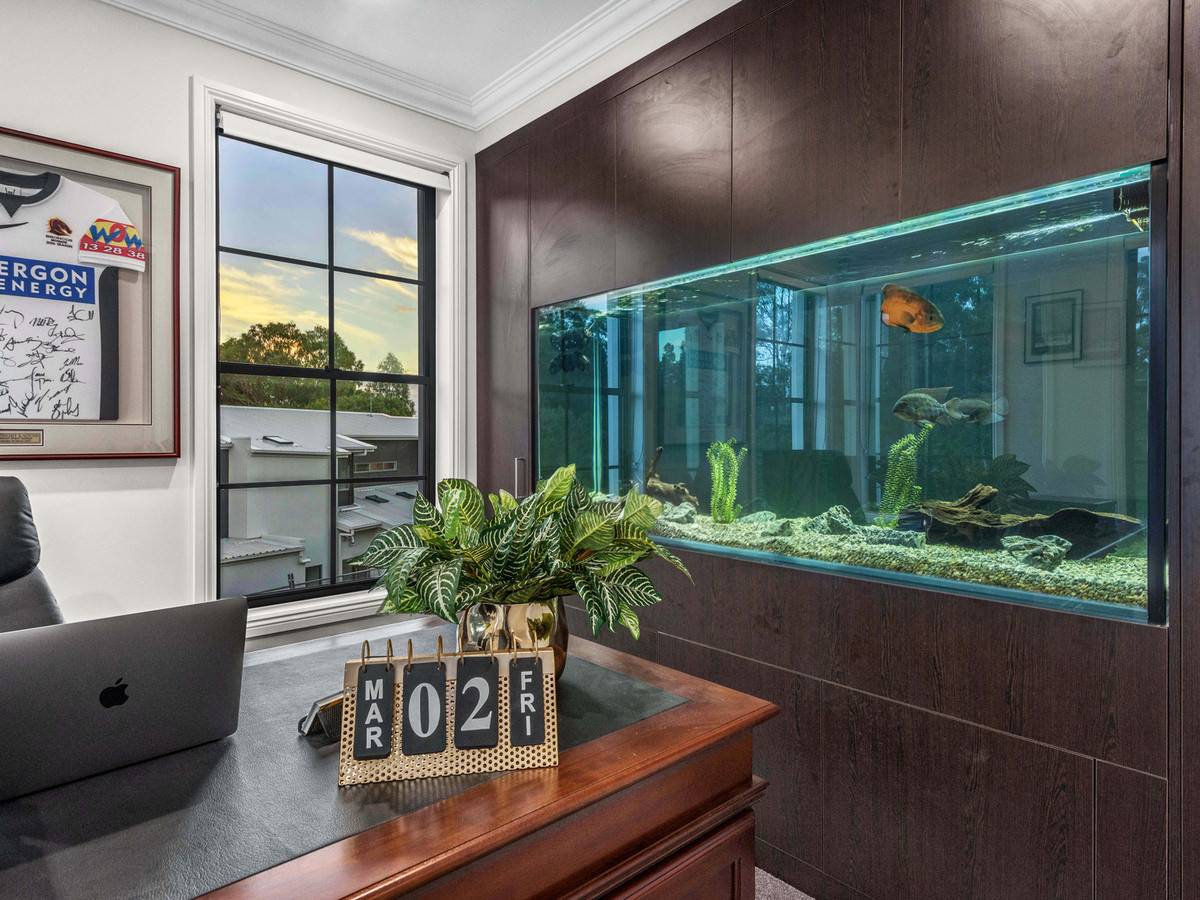Completing this lower level, an outstanding home theatre is the ultimate retreat for movie nights with family and friends, while the home office is ideal for all things professional and complete with integrated aquarium.