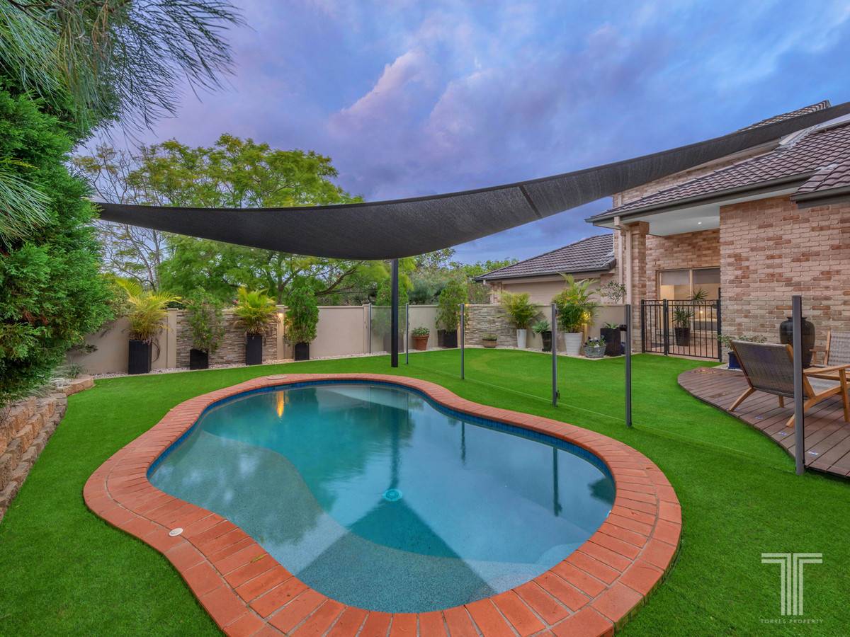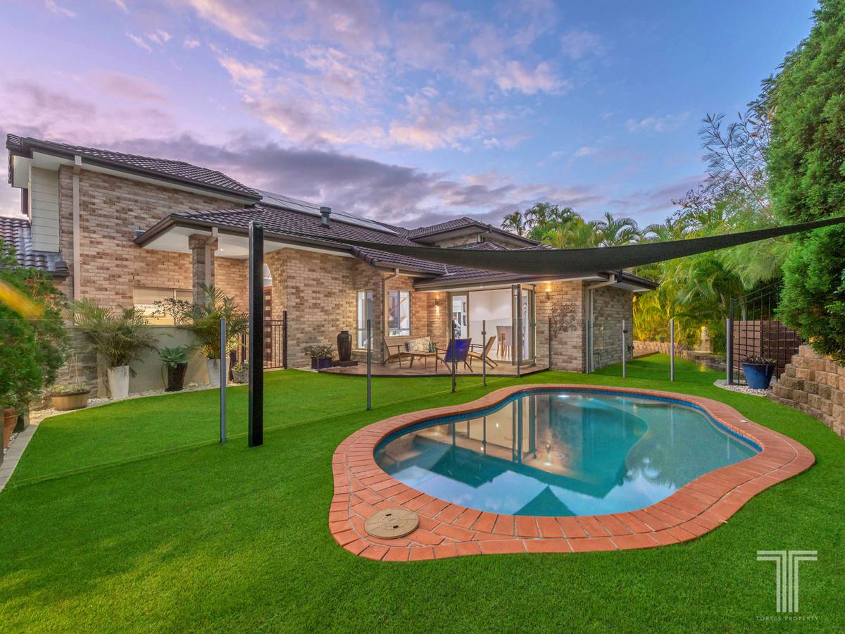 Designed for those who love the outdoors and hosting guests, the first timber deck gazes over rows of palm trees and greenery, offering privacy and a stunning entertaining backdrop. A second outdoor retreat is sure to be enjoyed all year round and boasts low maintenance astro turf and glistening views over the sparkling in-ground pool.