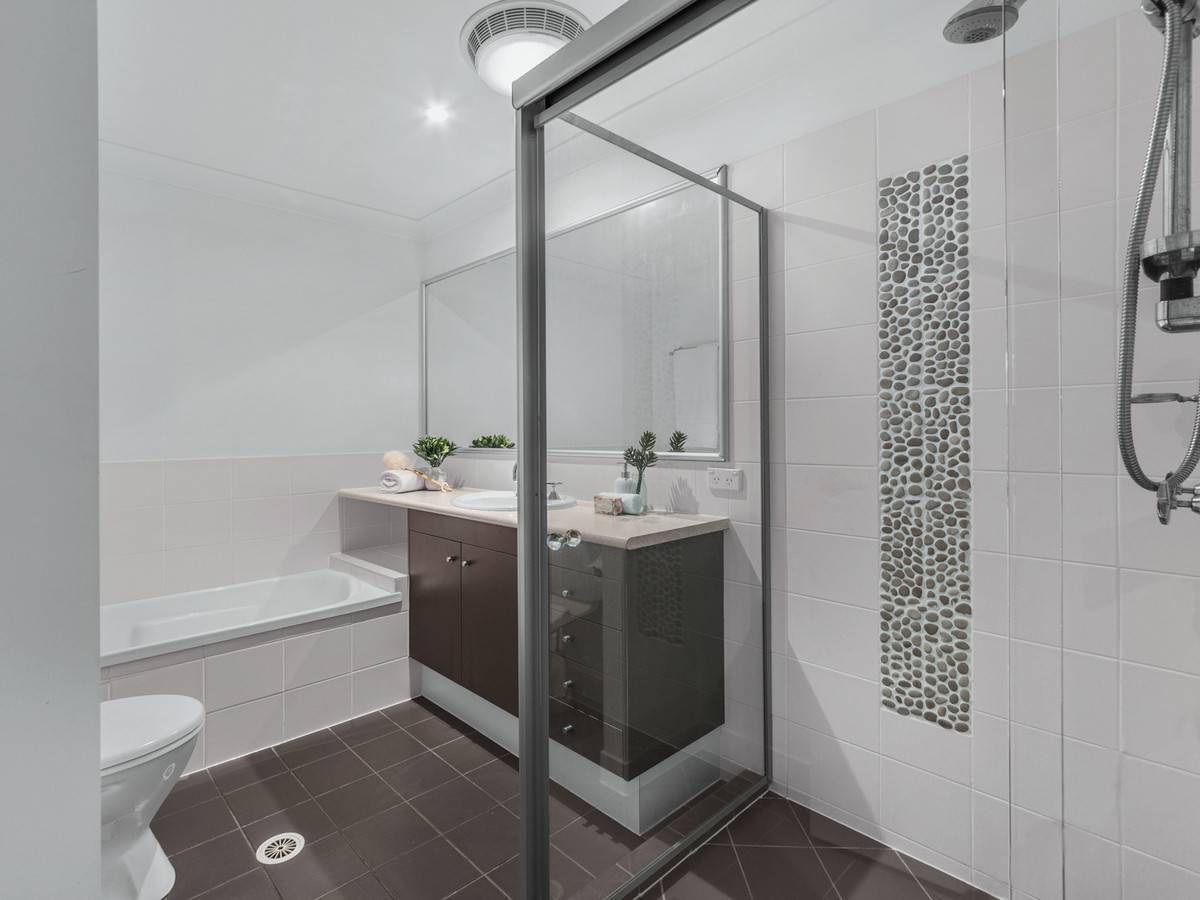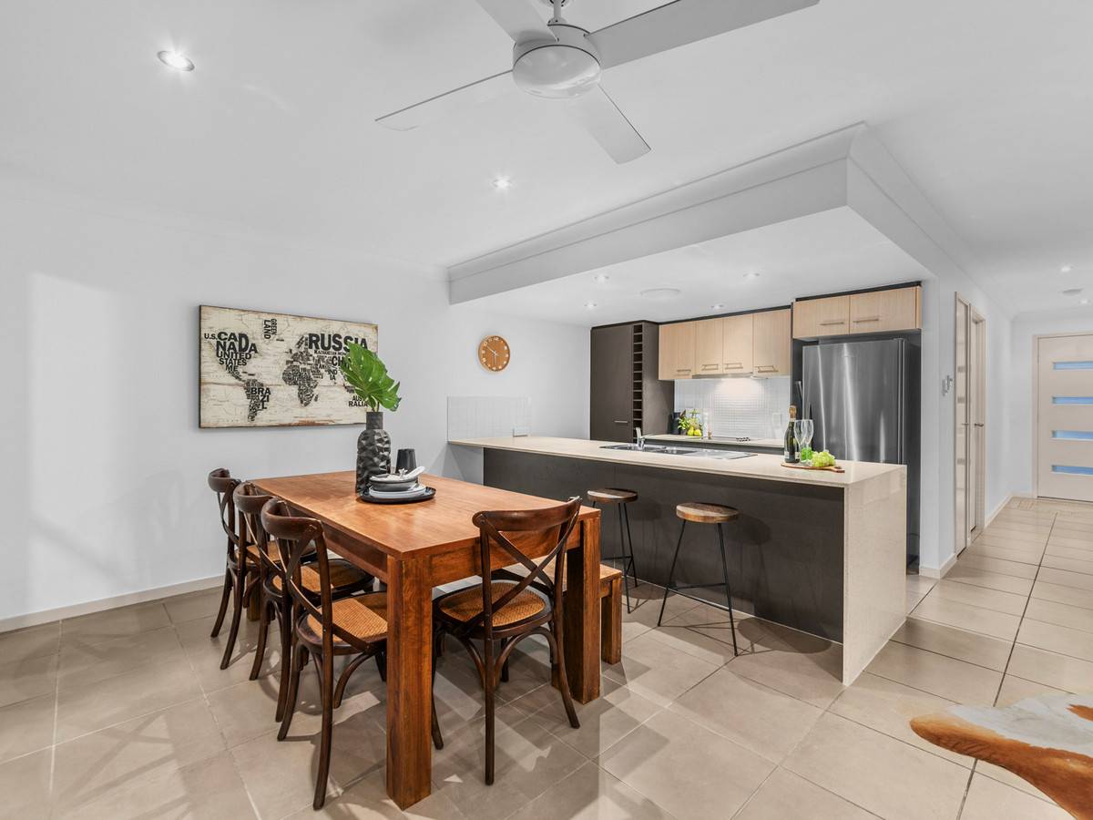 Stylish in design and spanning two spacious levels, the ground floor hosts an open plan living area alongside an outdoor entertaining zone. Featuring low maintenance floor tiles, high ceilings and downlights, the lounge and dining area is filled with natural light. Adjoining the sleek and functional kitchen with caesar stone benchtops, breakfast bar, stainless steel appliances, ceramic cooktop, dishwasher and ample cabinetry, this central living space extends directly out to the rear patio and deck with ease.