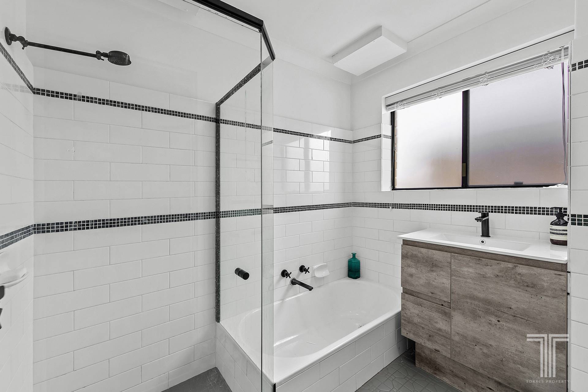 Both bedrooms feature built-in robes and access to the renovated bathroom, boasting a shower, a bathtub, and a separate toilet. Completing the layout is an oversized lock-up garage and laundry downstairs.