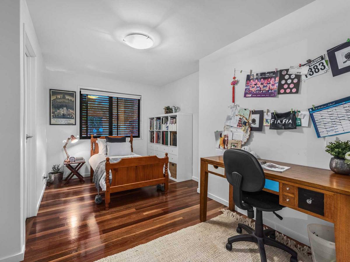 Located downstairs, the spacious study has been converted into an additional bedroom with built-in robe, timber flooring and views over the backyard. Featuring sliding door access, this room can also be opened up and utilised as an extension of the living area, or a perfect bedroom for those seeking their own space.