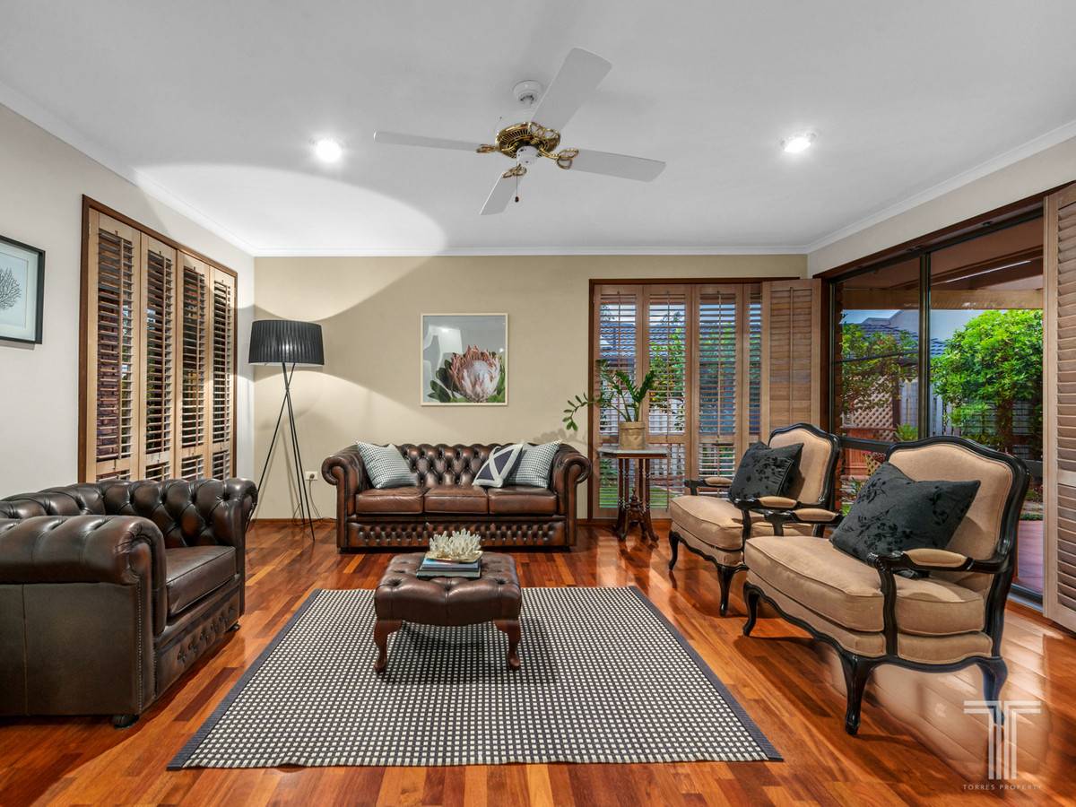 Entering inside, the formal lounge and dining area showcases rich timber flooring and exposed brick to create a warm and inviting ambience that will make you feel instantly at home.