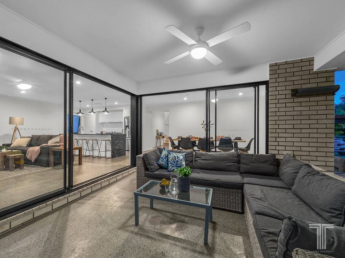 An exceptional family home in the sought-after suburb of Holland Park, this two-storey residence captures cooling breezes, natural light and sweeping district views from its elevated position.