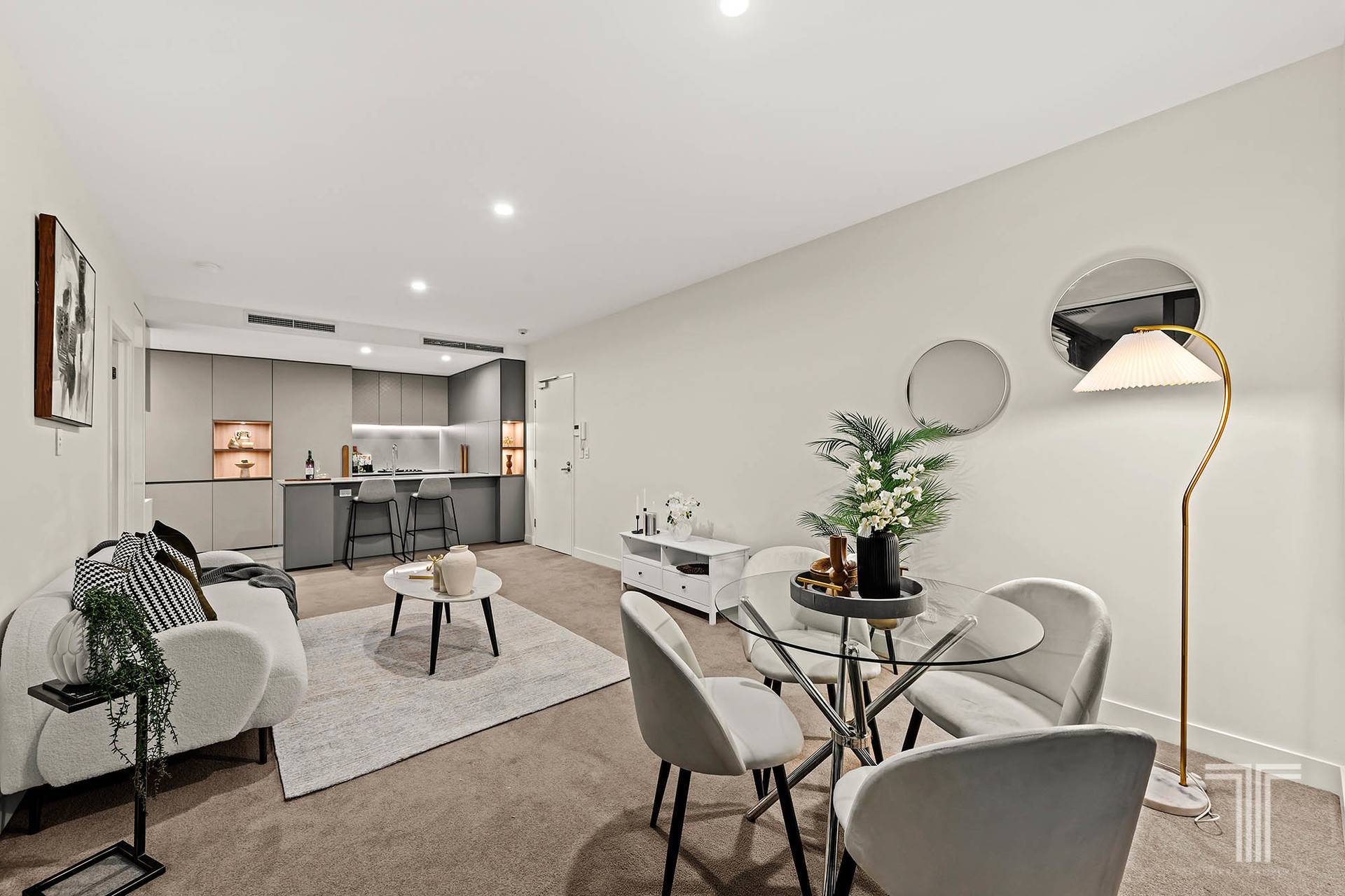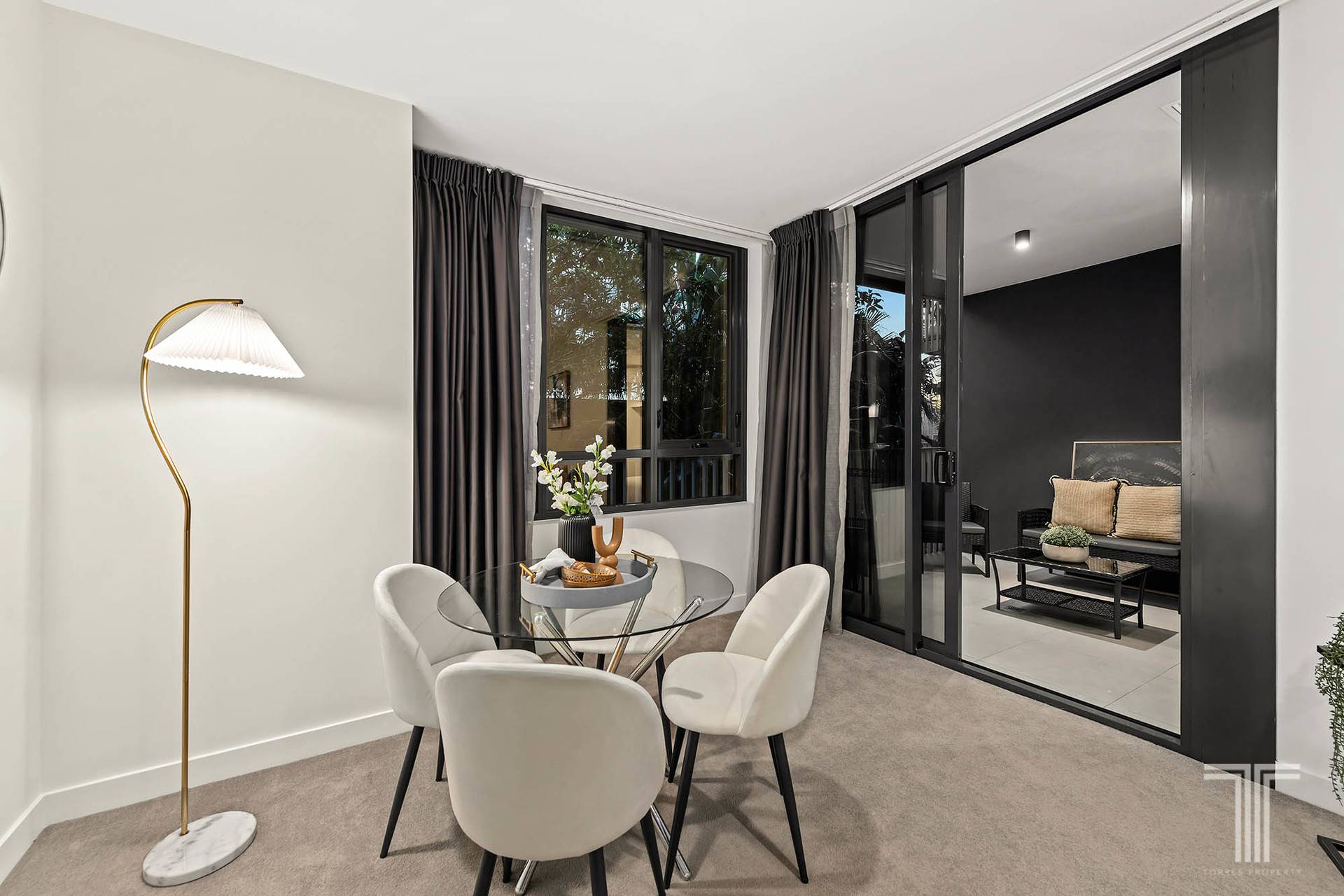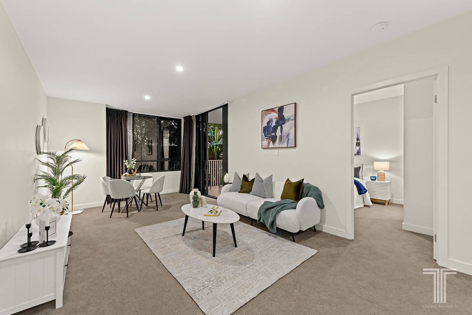 The spacious open living area, transitions effortlessly outdoors to the private balcony, which forms a leafy entertaining oasis hidden from view.