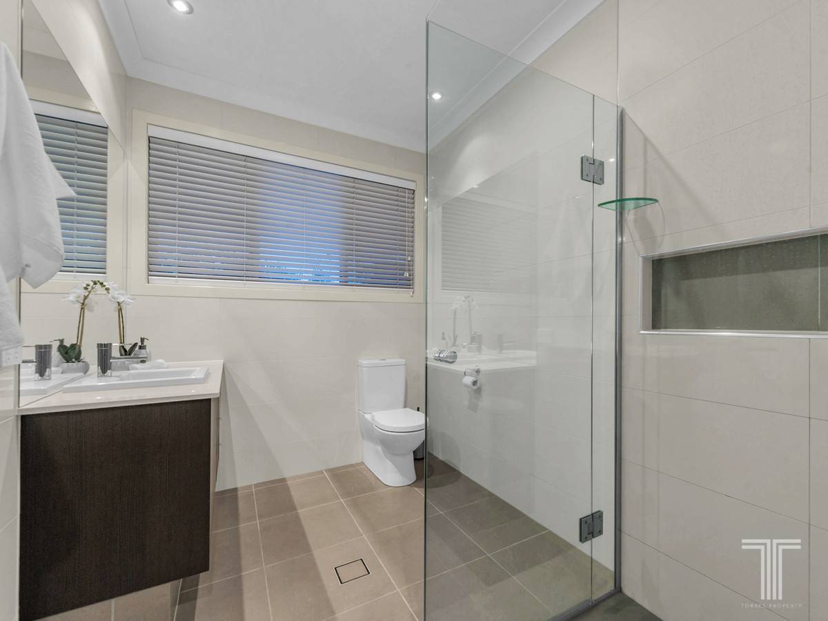 As expected from a home of this calibre, the master suite is generously sized with a walk-in robe plus an additional wardrobe for storage, or a shoe collection. There is a pristine ensuite with dual basin his and her vanity, glass shower and separate toilet for privacy. Complete with air conditioning, fan and a great view of the outside, you will adore relaxing here.