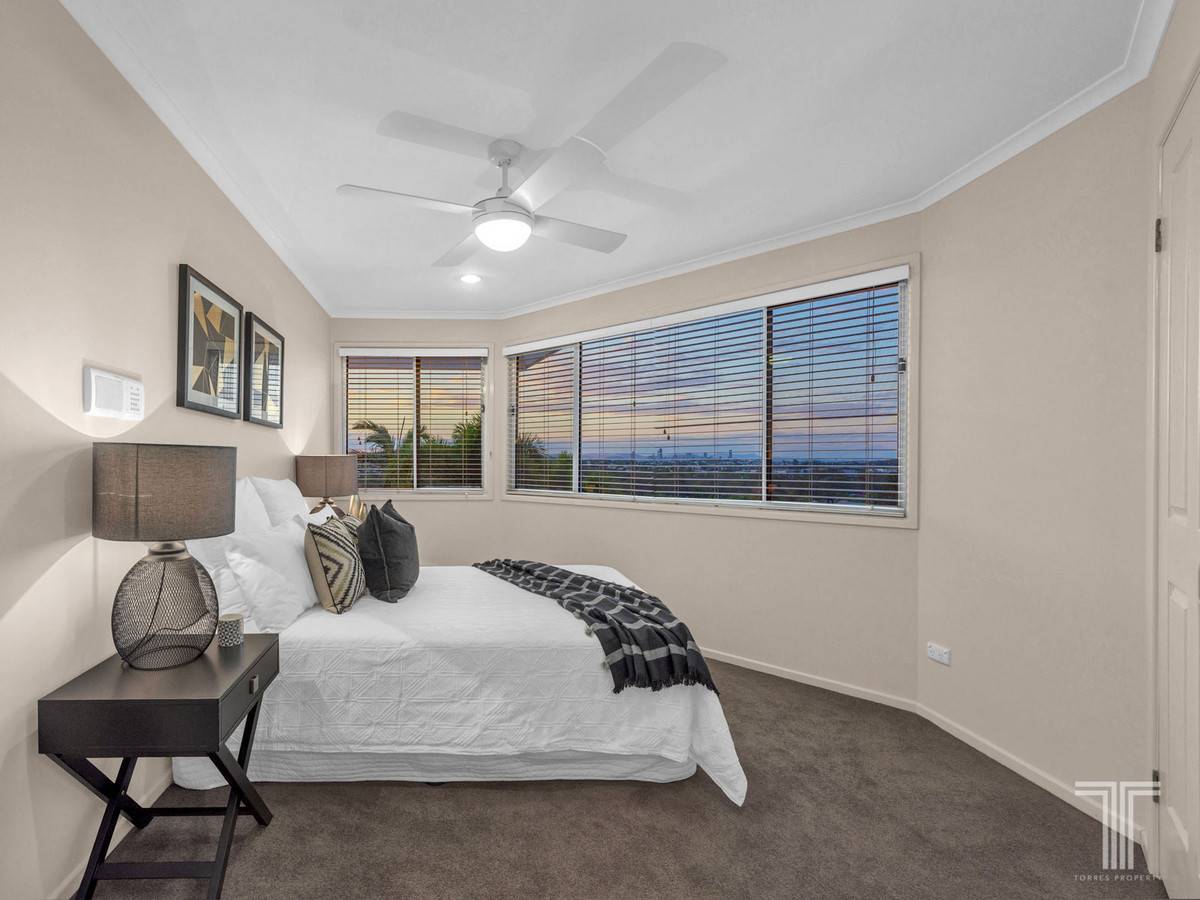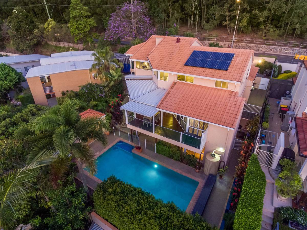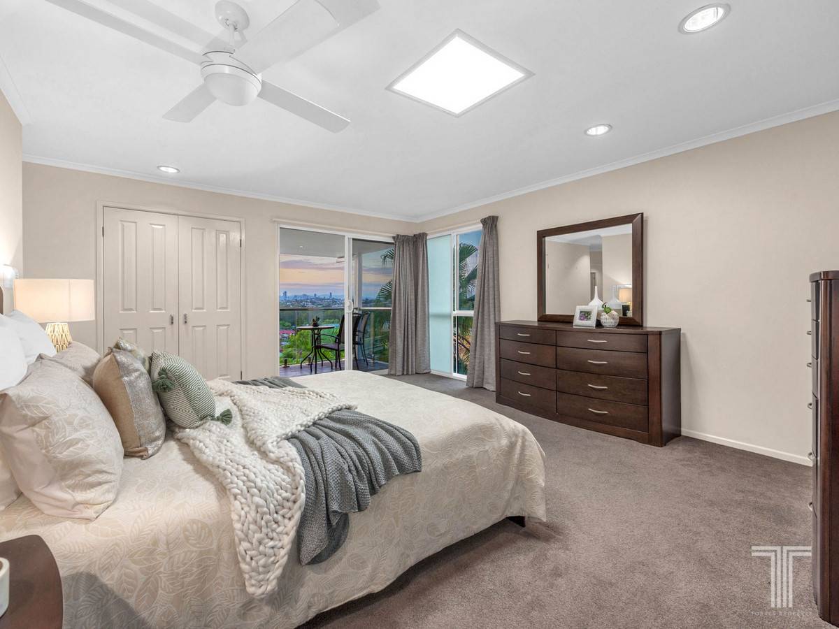 Located on the upper level, an open plan study and main bathroom accompany four spacious bedrooms with stunning city views. A grand retreat, the master suite boasts a private balcony with elevated outlooks, air-conditioning, walk-in robe, skylight and spacious ensuite. The additional three bedrooms all include built-in robes, with a fifth bedroom ideal for guests located on the ground floor.