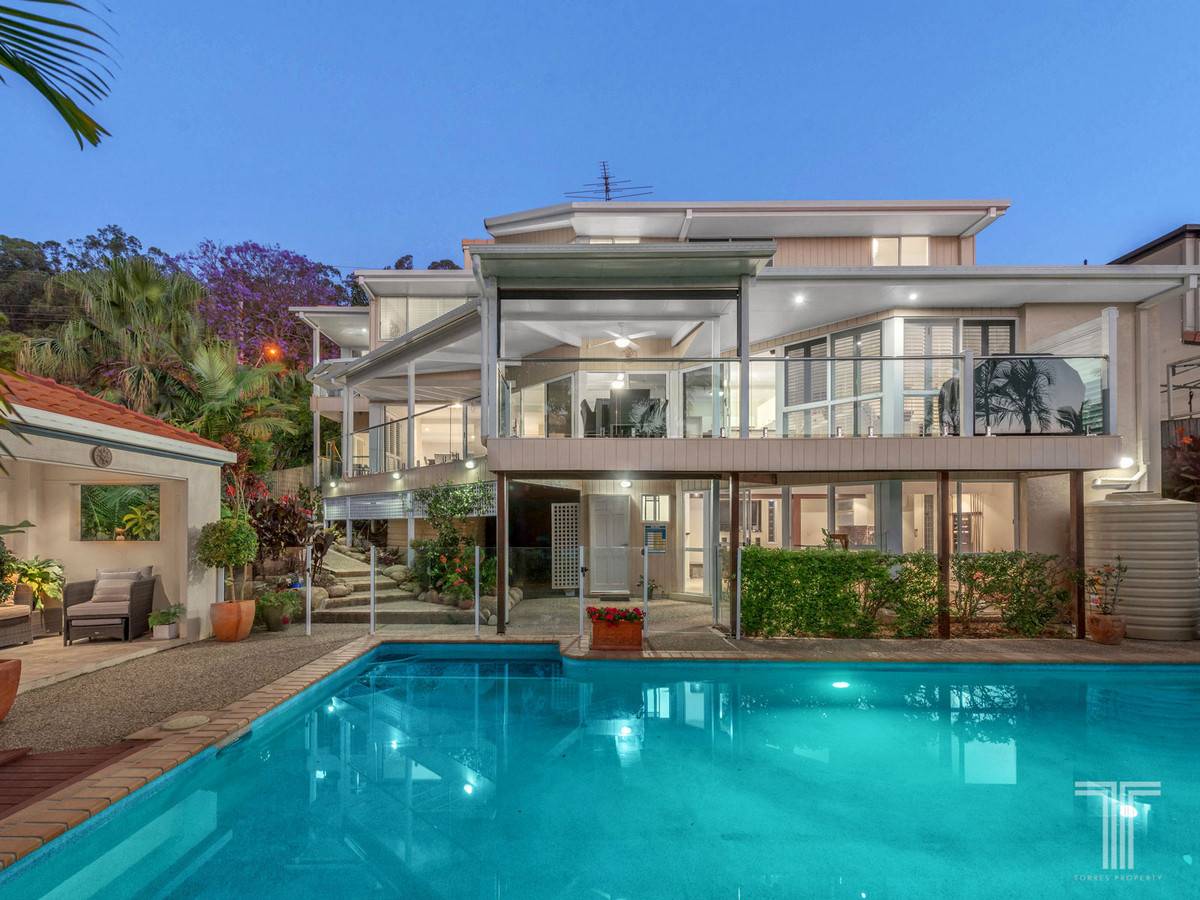A stunning residence with sweeping treetop and city views, this grand family home, designed by architect Denis Mullins, boasts enviable living and resort-style entertaining.