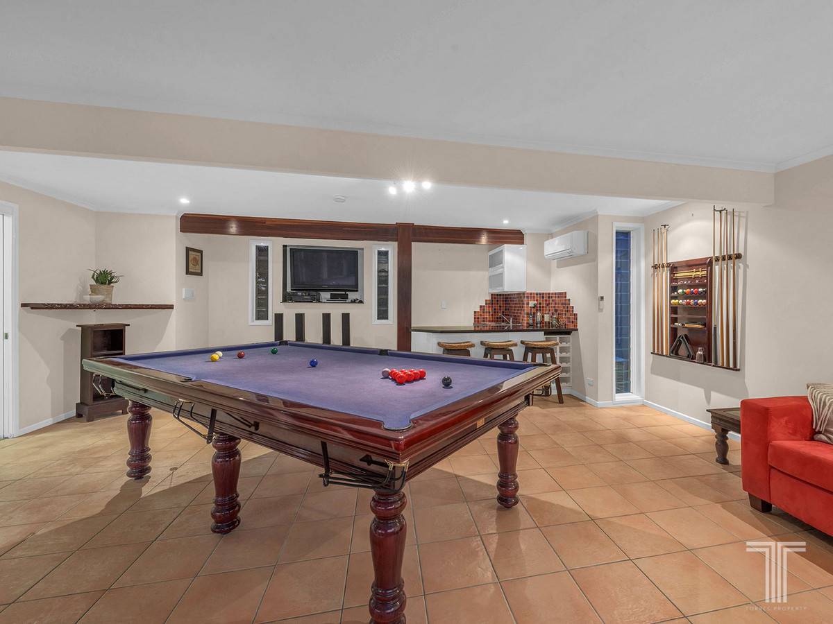 The ultimate resort-style retreat, a glistening 10m swimming pool with cabana and lush surrounding hedges is sure to be enjoyed all summer long. Complete with a billiards/games room featuring a wet bar, wall mounted TV, bathroom and large doors opening directly onto the pool, this idyllic oasis will be a favourite amongst parents and children alike.