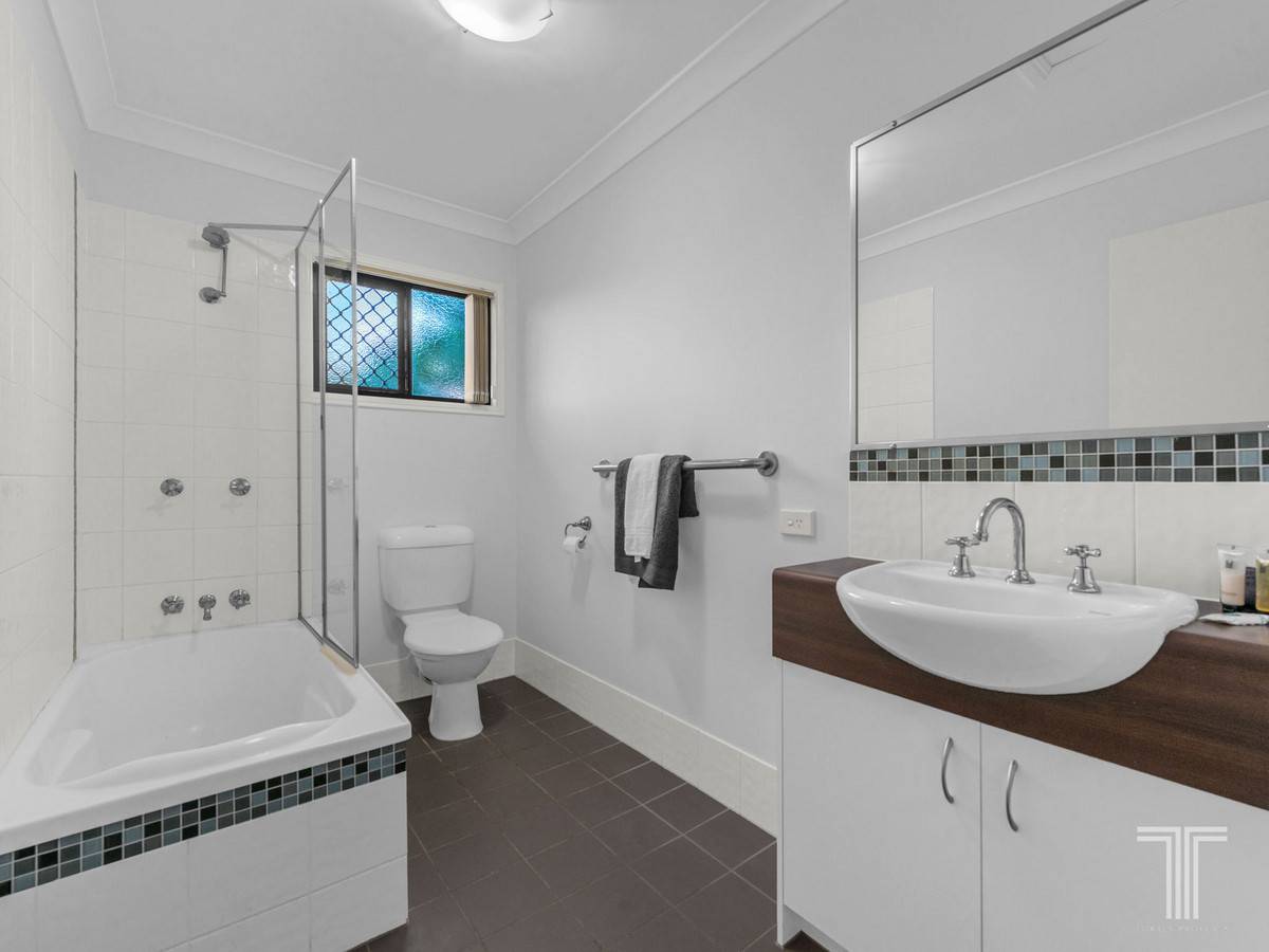 Upstairs, two bedrooms with carpeted flooring and built-in robes are serviced by the main bathroom.