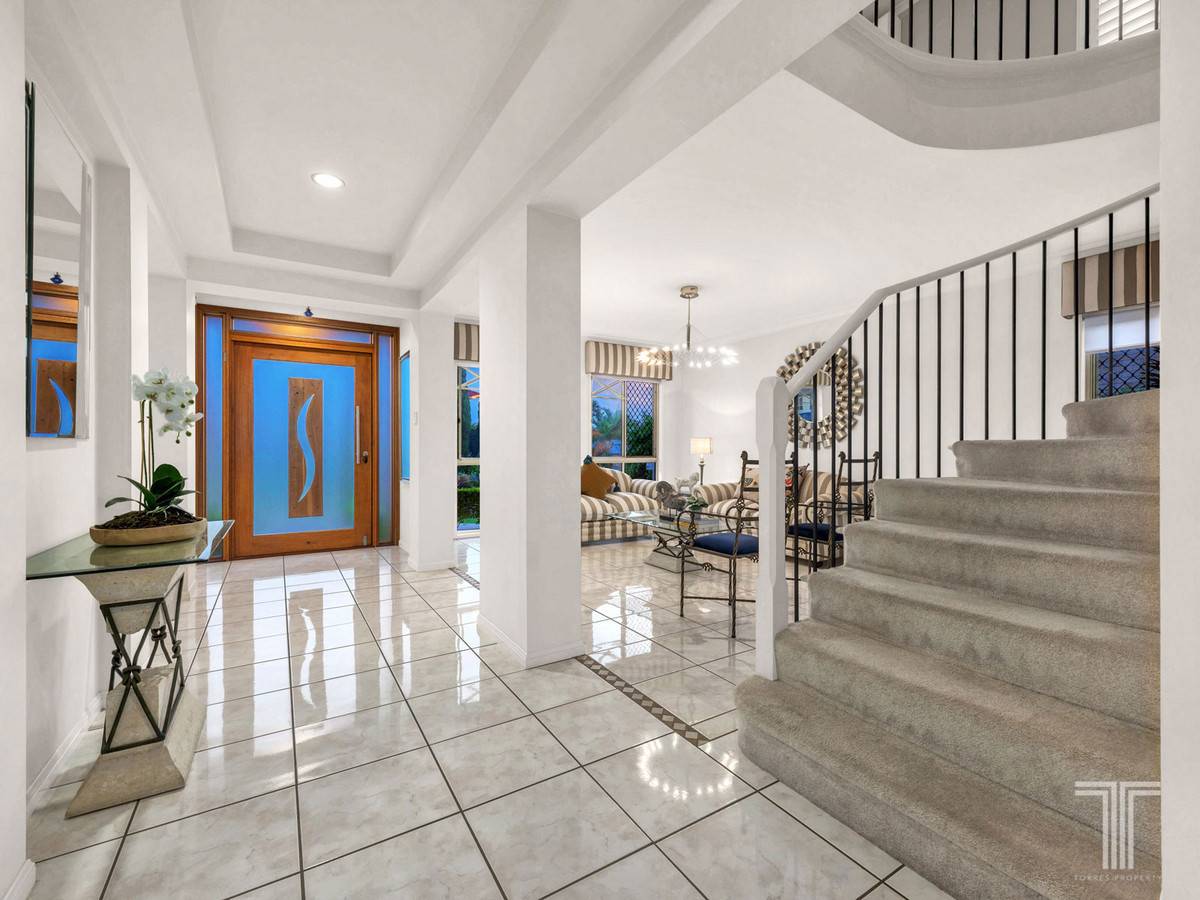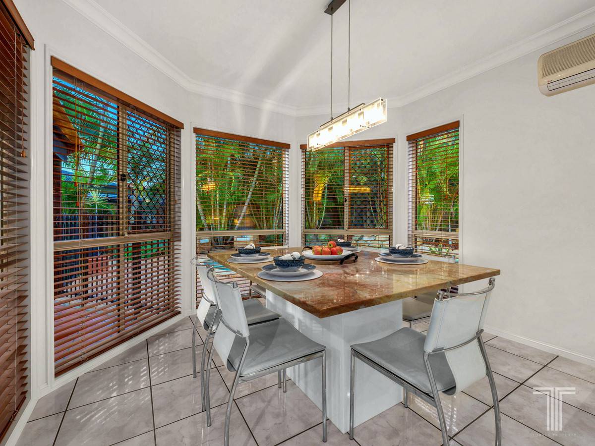 Showcasing soaring ceilings and floor tiles, the lounge and dining area features an open design and extends out seamlessly to the first of two outdoor entertaining areas. Exceptionally stylish and completely covered, the large patio overlooks the lush tropical gardens and glistening pool, creating the perfect summer escape.