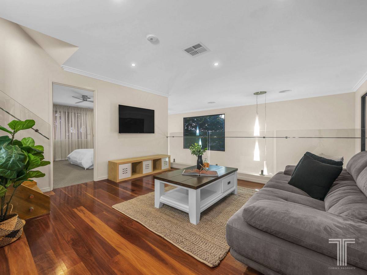 Located on the upper level, an additional sitting/TV room adjoins a kitchenette and four bedrooms, creating a much-needed breakaway space for teenagers and adult children. Generously sized, the master suite features a walk-in robe and ensuite, while bedroom 2 also includes a walk-in robe and bedrooms 3 and 4 with built-in robes.