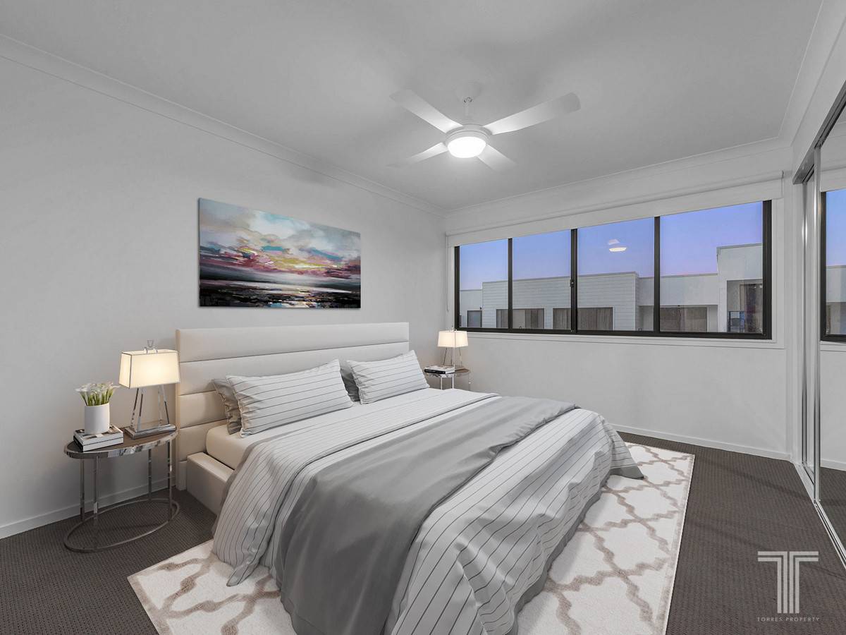 Located on the townhomes upper level, four generously sized bedrooms include a master suite with walk-through robe and modern ensuite featuring dual vanities. The additional bedrooms all boast mirrored built-in robes and include one with private balcony.