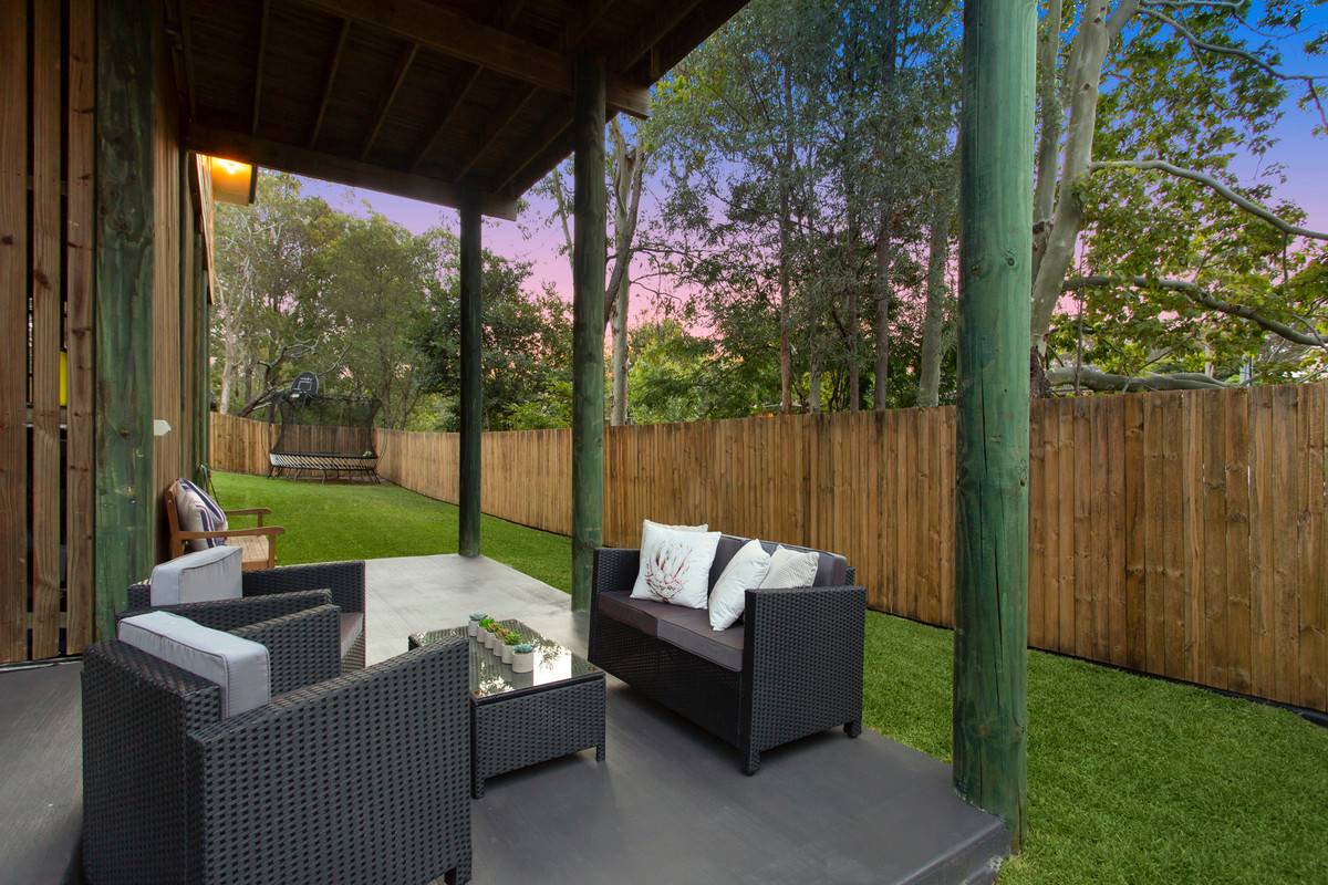 Exceptionally private and enjoying leafy outlooks, you can relax and host guests here or take the stairs down onto the fully fenced, grassy backyard with second alfresco area.