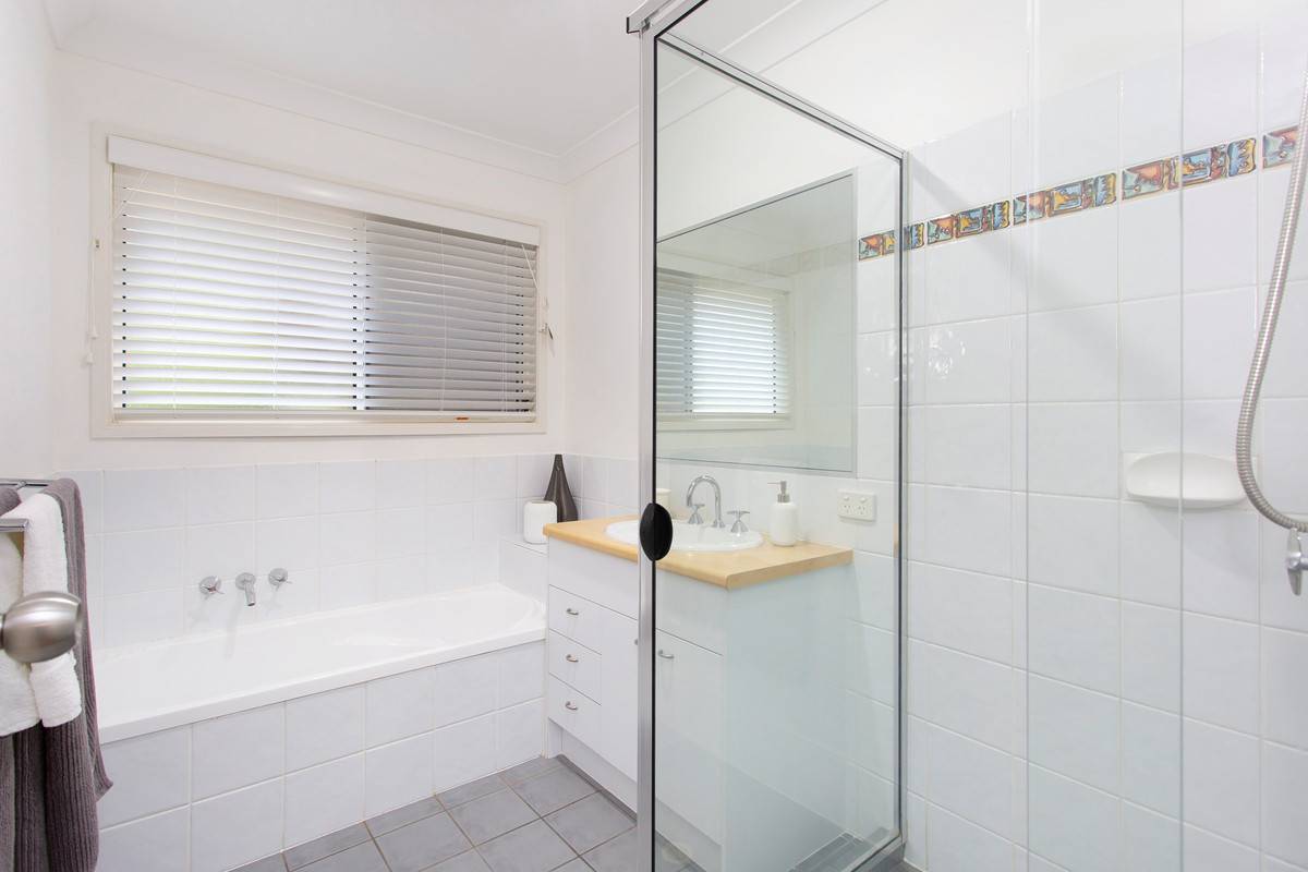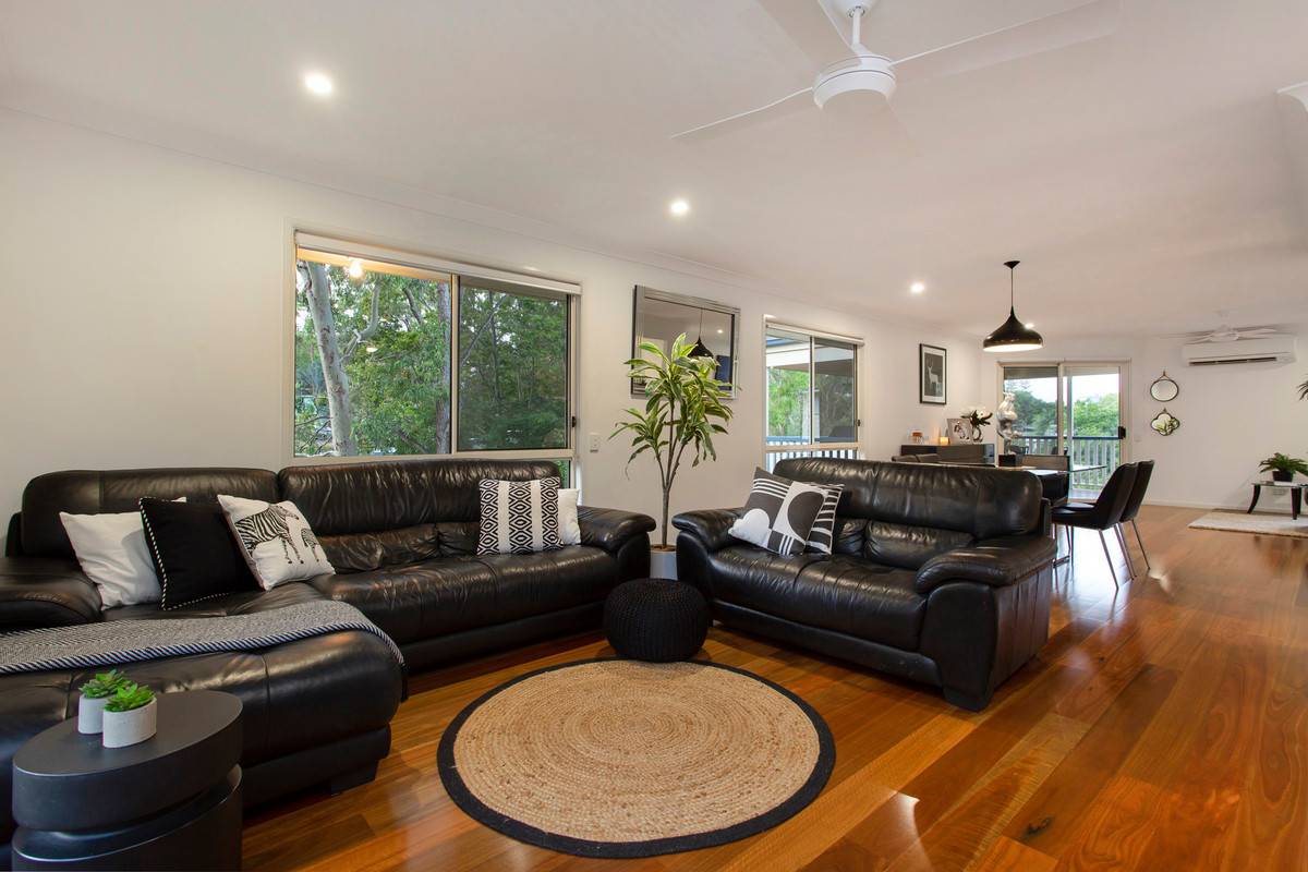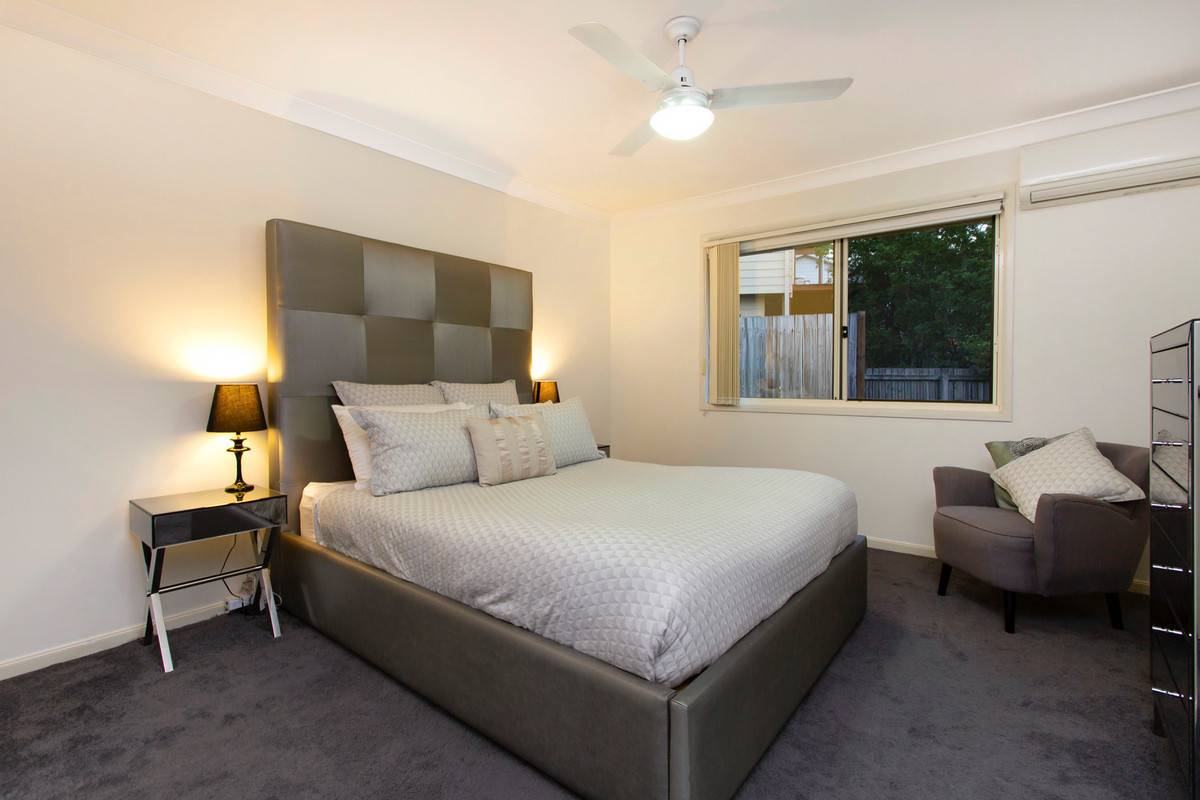 Hosting four bedrooms, all with ceiling fans, air-conditioning and built-in robes, the master suite also enjoys an ensuite, while a main bathroom services the rest of the home.
