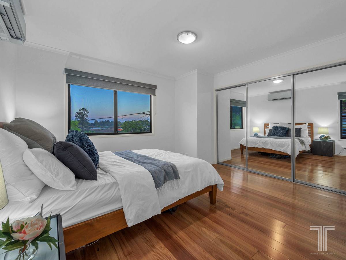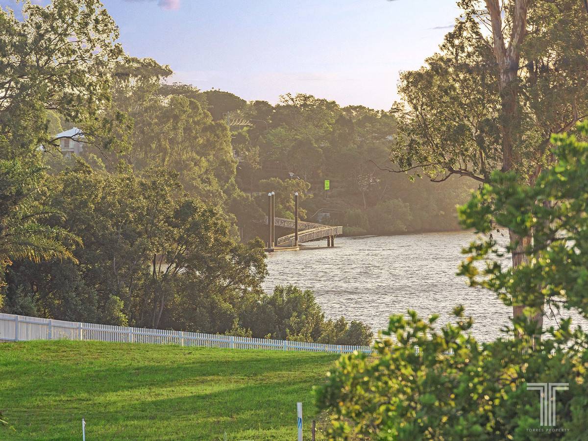 On the upper level, three good-sized bedrooms all include mirrored built-in robes. While bedrooms two and three offer easy access to the main bathroom, the master includes an ensuite and tranquil outlooks across the Brisbane River.