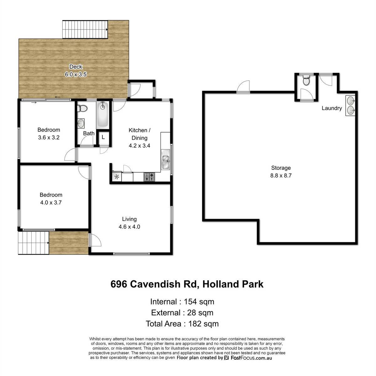 The property has two oversized bedrooms, both serviced by a modern main bathroom with shower over bath. Underneath there is a huge storage area/workspace with laundry and an additional toilet.
