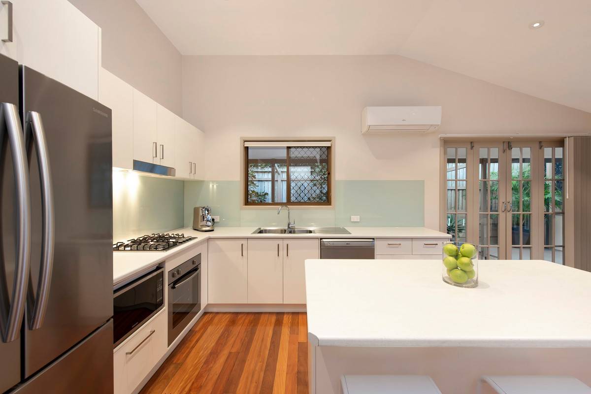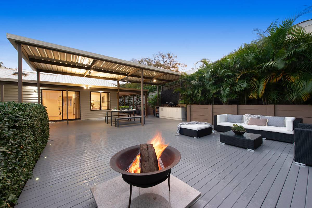Air-conditioned and adorned with stainless steel appliances, the kitchen boasts an island bench with breakfast bar, built-in oven, stove and rangehood. Opening out onto the covered alfresco patio and expansive rear deck, this private oasis is perfect for open-air entertaining. With an outdoor kitchen featuring stone benchtops, sink, cabinetry, gas cooktop, enjoy hosting friends here while children and pets play in the expansive, fully fenced yard.