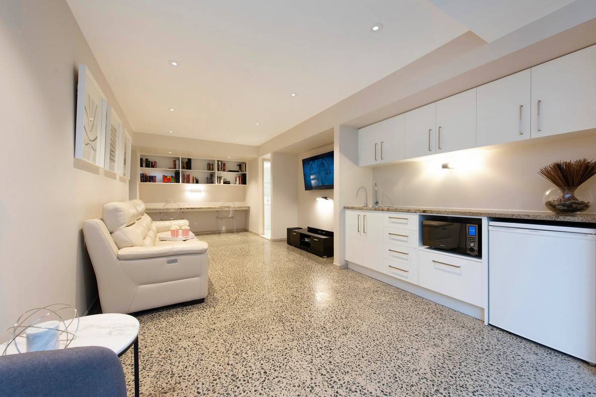 Concrete polished flooring downstairs