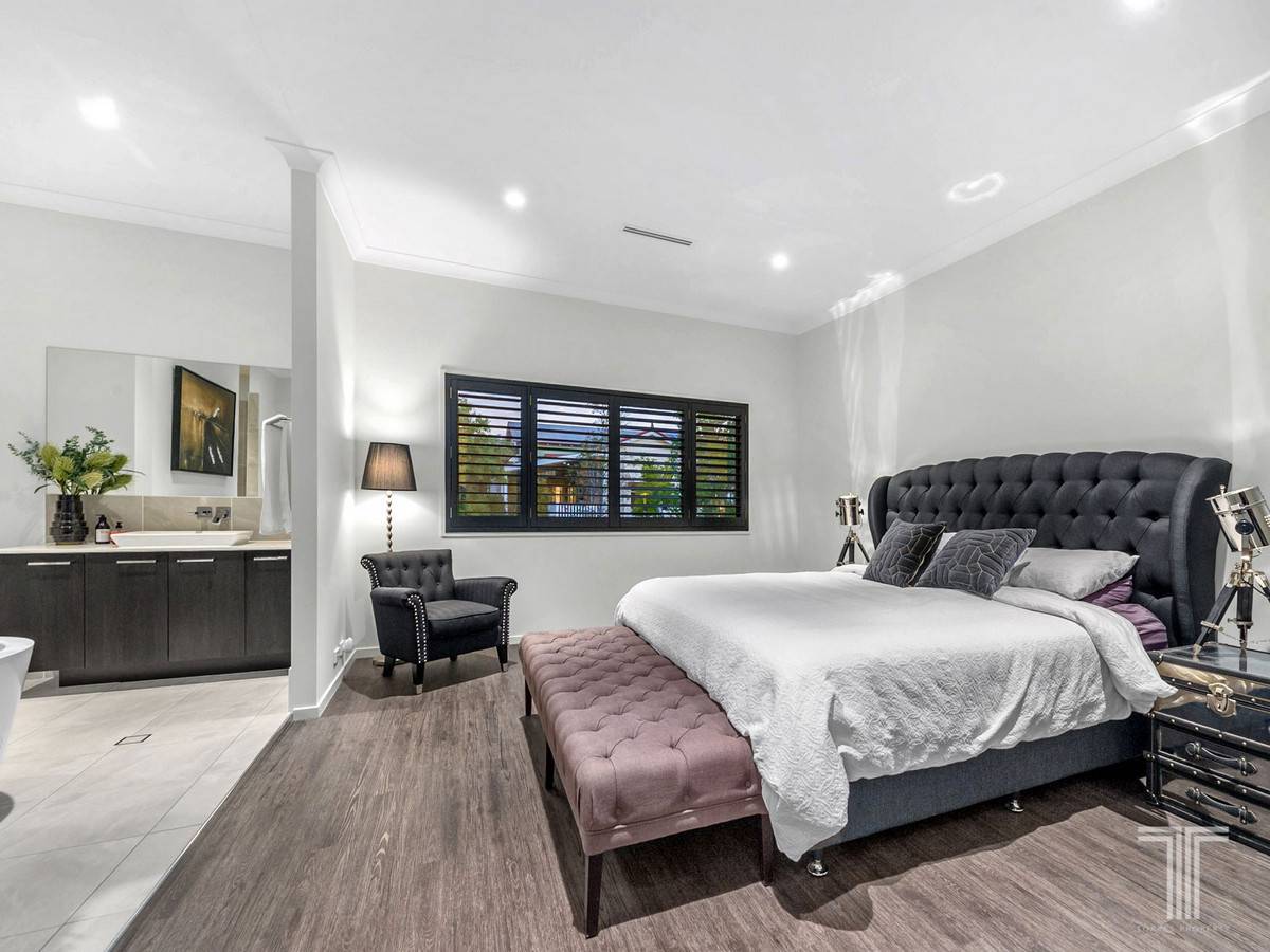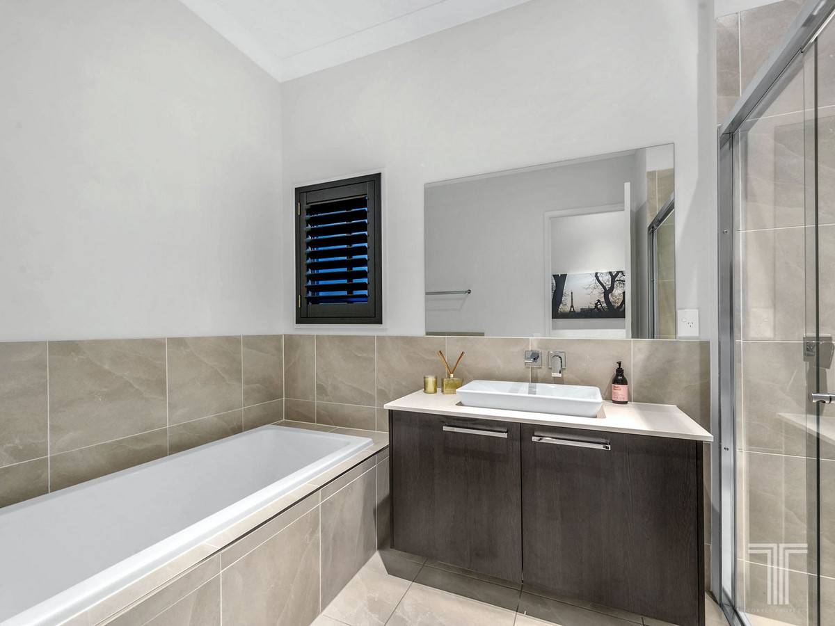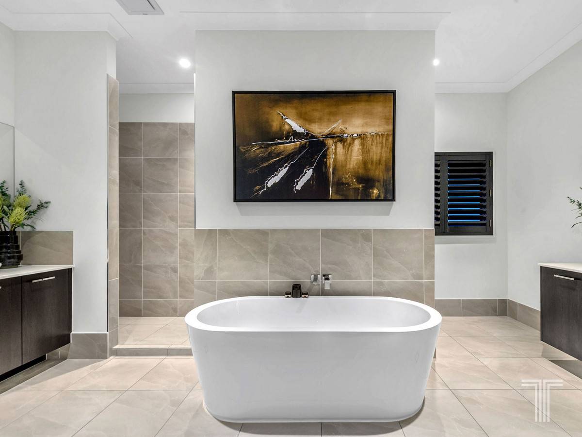 Completing the upper level, the master suite is exceptionally lavish, featuring a walk-in robe and luxe open ensuite with freestanding bath and double-head shower.