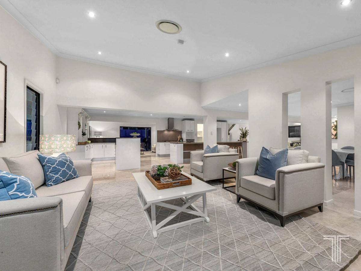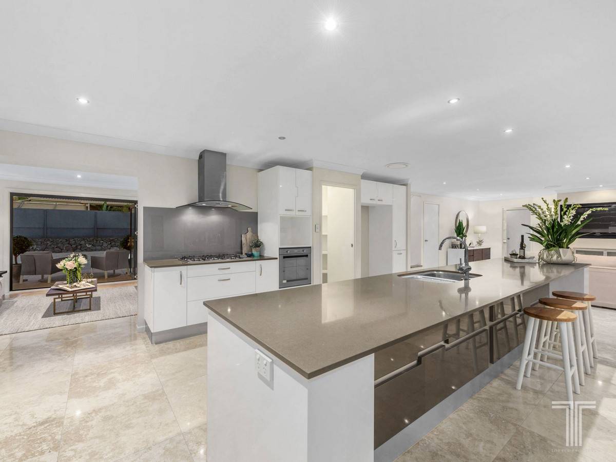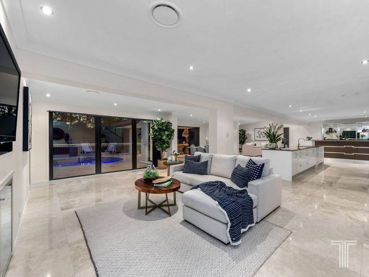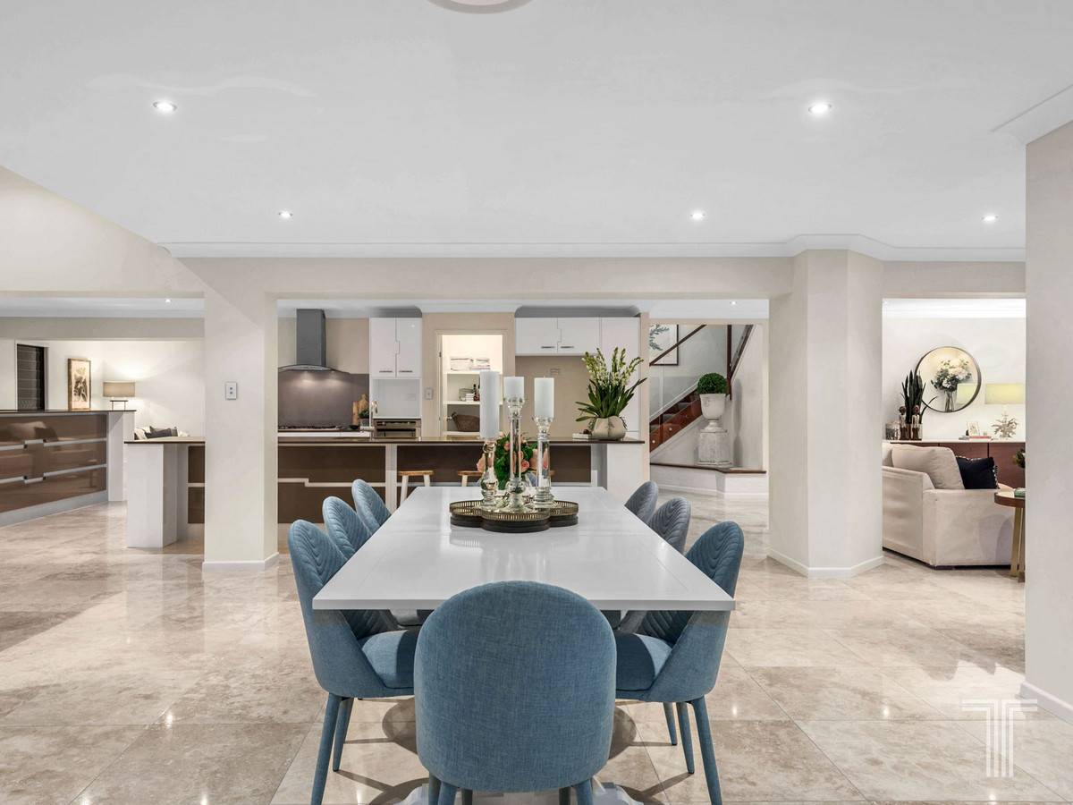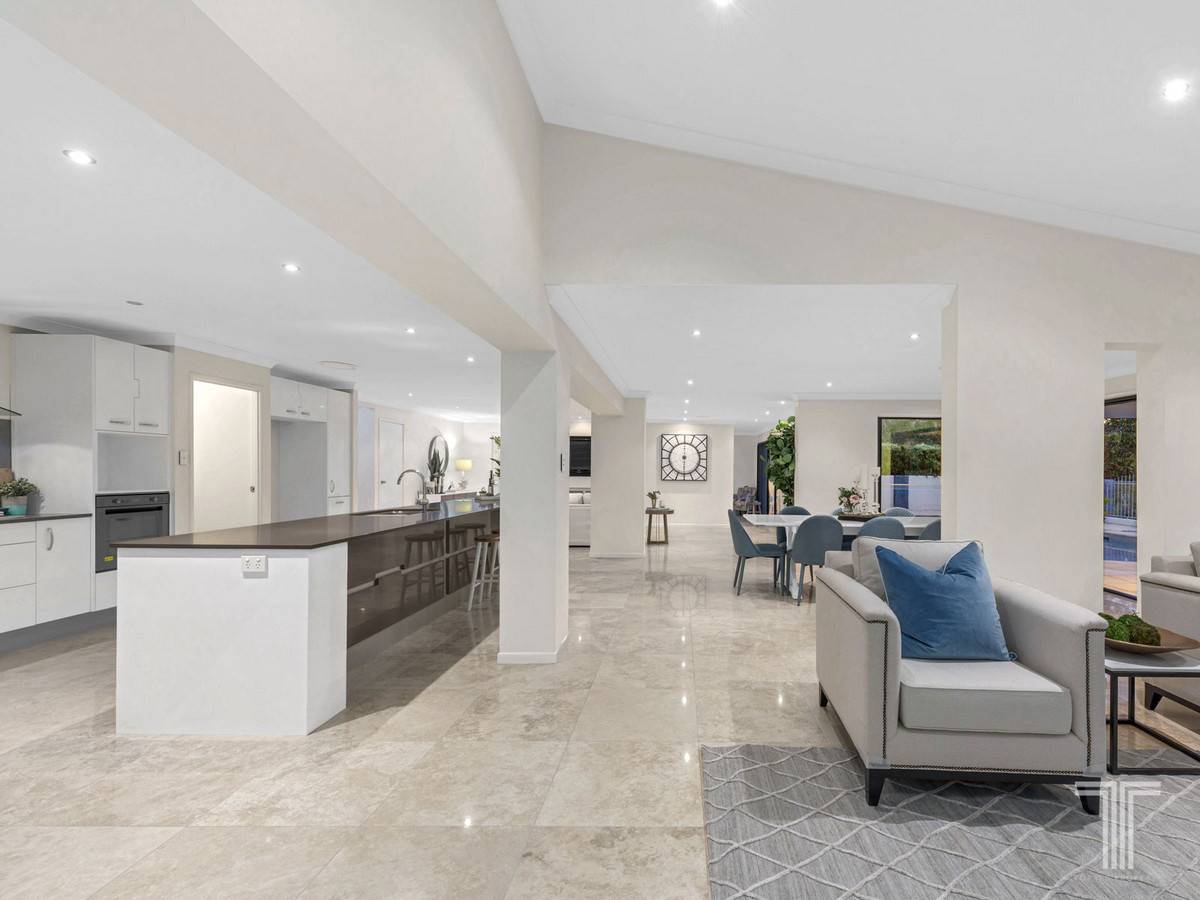 Upon entry, you will immediately note the quality which carries through to every aspect. The lower level is finished with Travertine tiles, soft neutral tones, high ceilings and ambient LED down lighting. There are several living areas for you to utilise including a formal lounge, separate kids playroom and an open plan living, dining and family room.